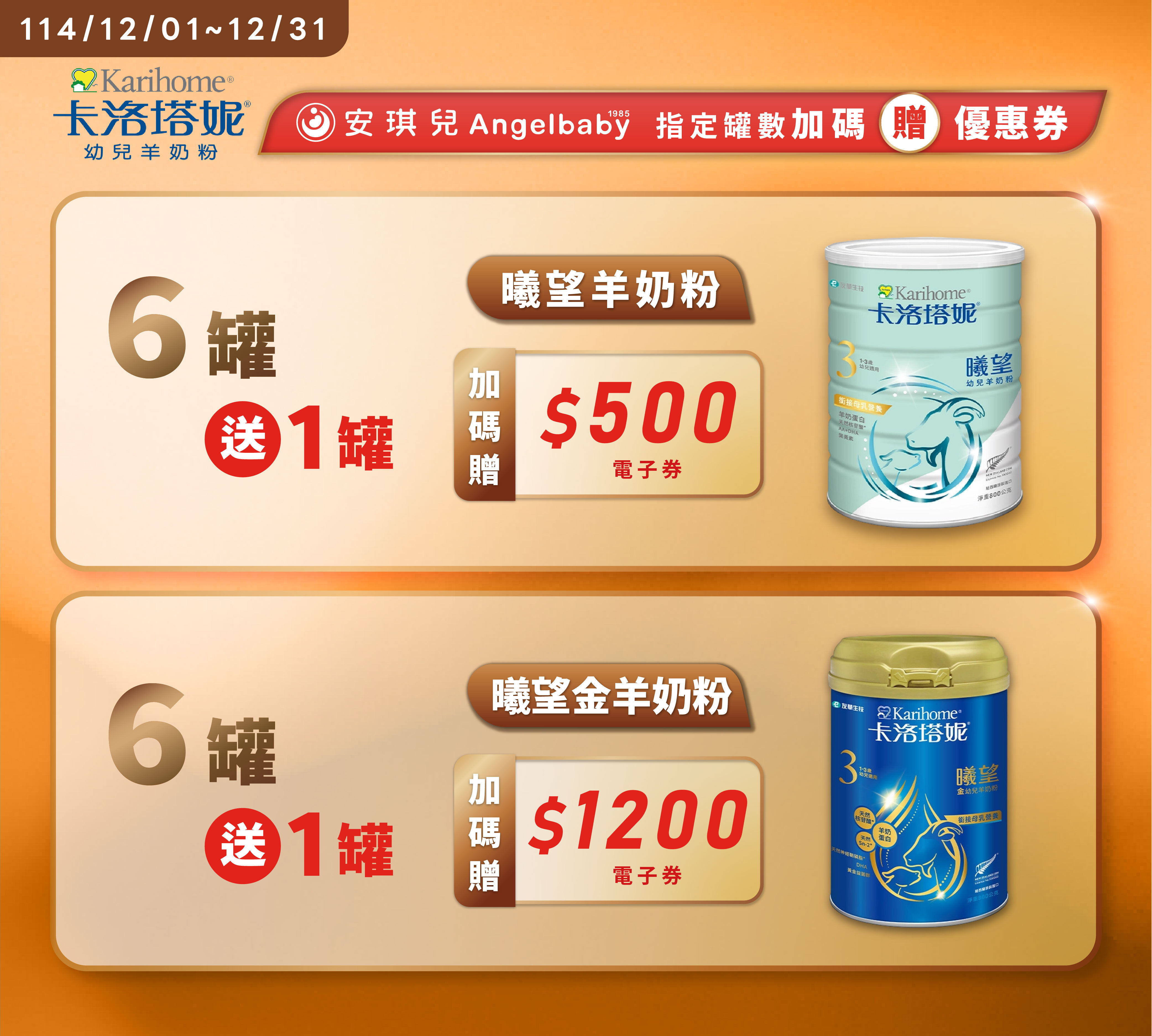 安琪兒12月滿罐禮活動,集結人氣奶粉品牌,