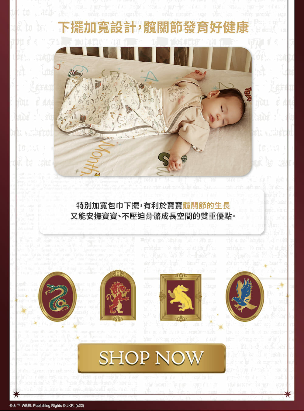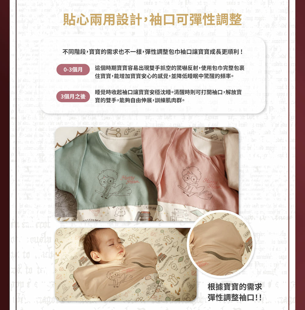 台灣 赫媽咪哈利波特嬰兒成長型包巾-小物印花款(4色可選)