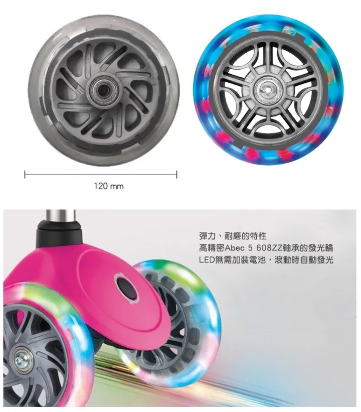 ●彈力、耐磨的特性,以及高精密Abec 5 608ZZ軸承的發光輪,