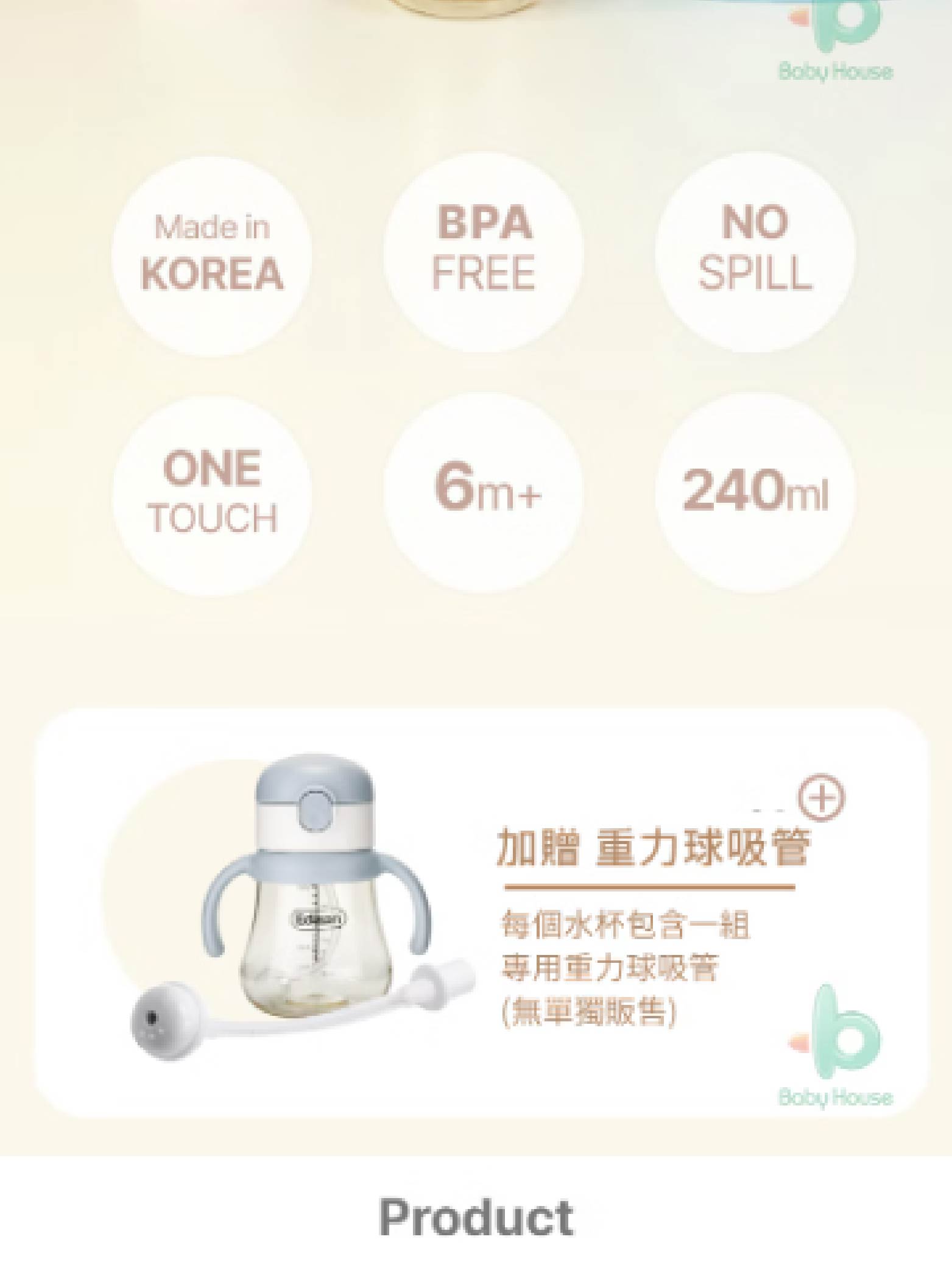 ●附贈重力球吸管任何角度都可喝水,讓您心給寶寶的第一個吸管水杯!