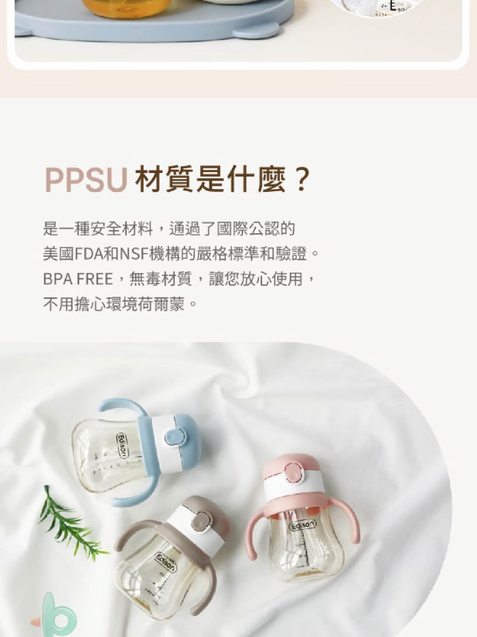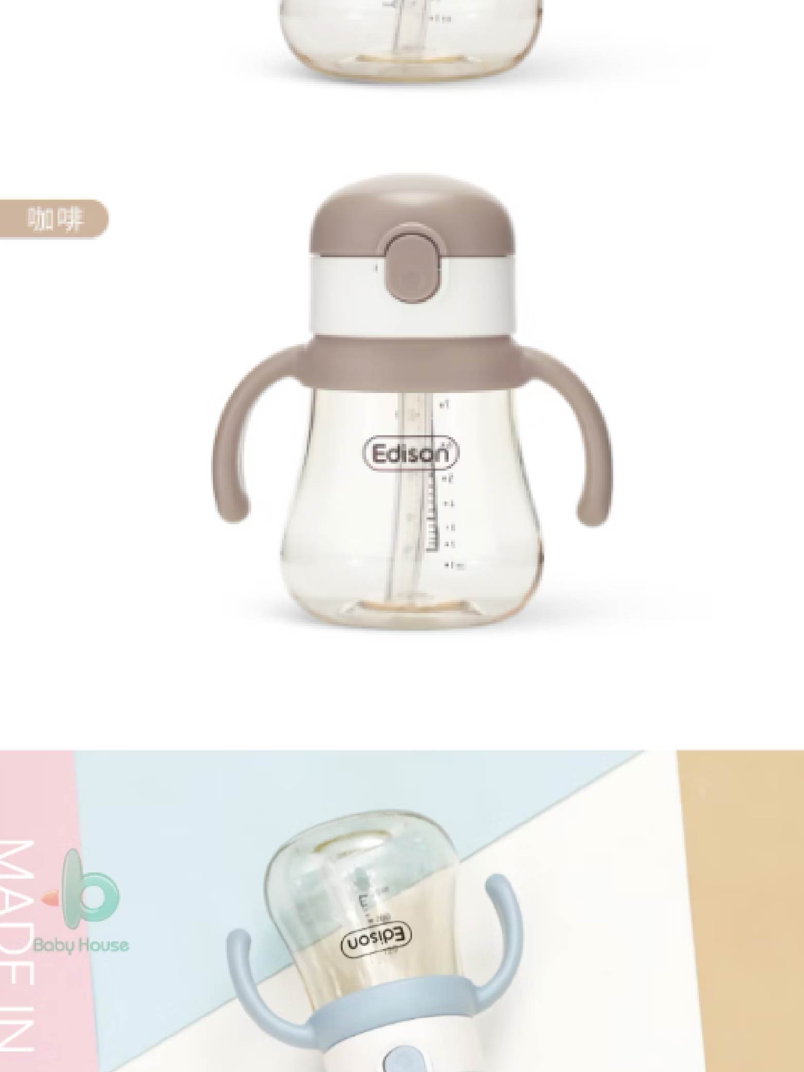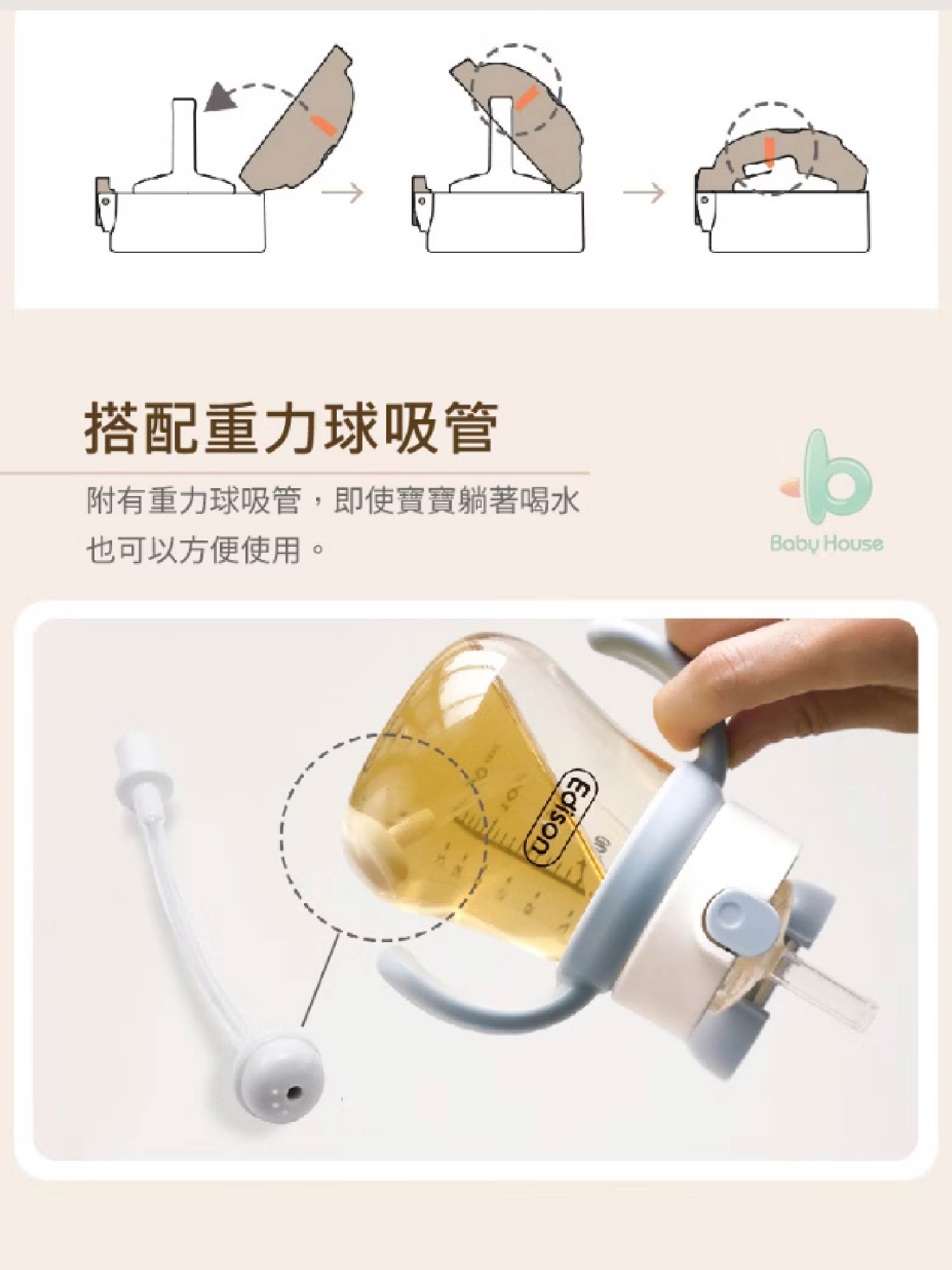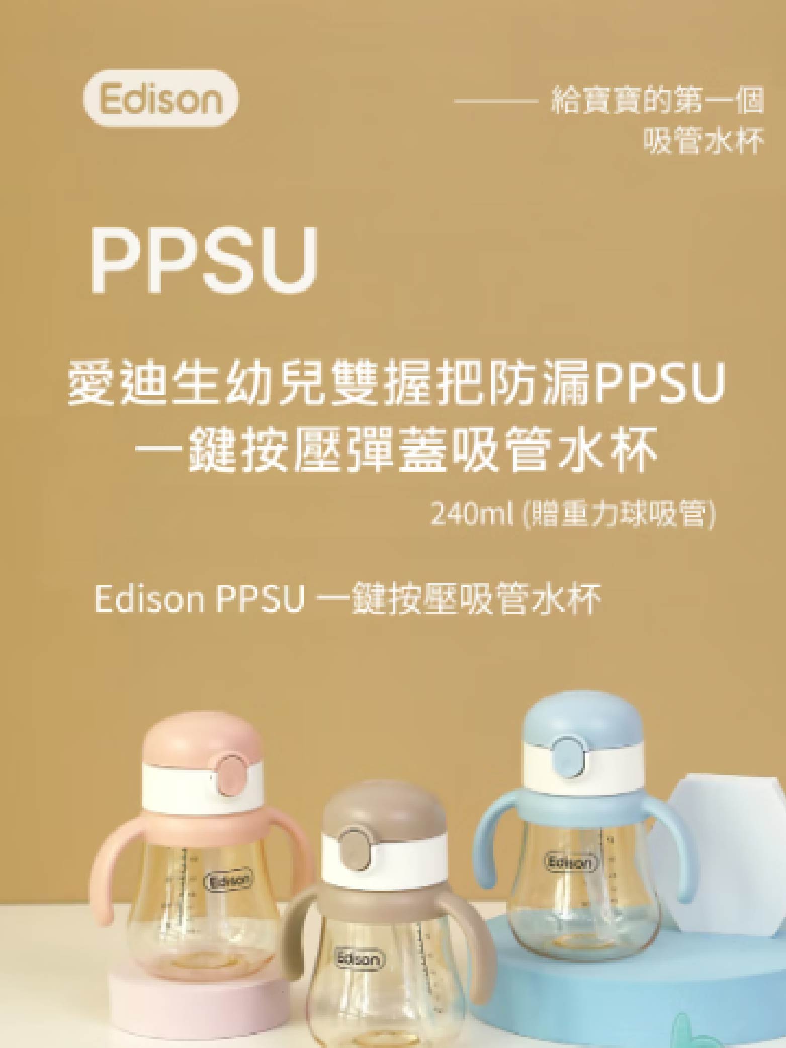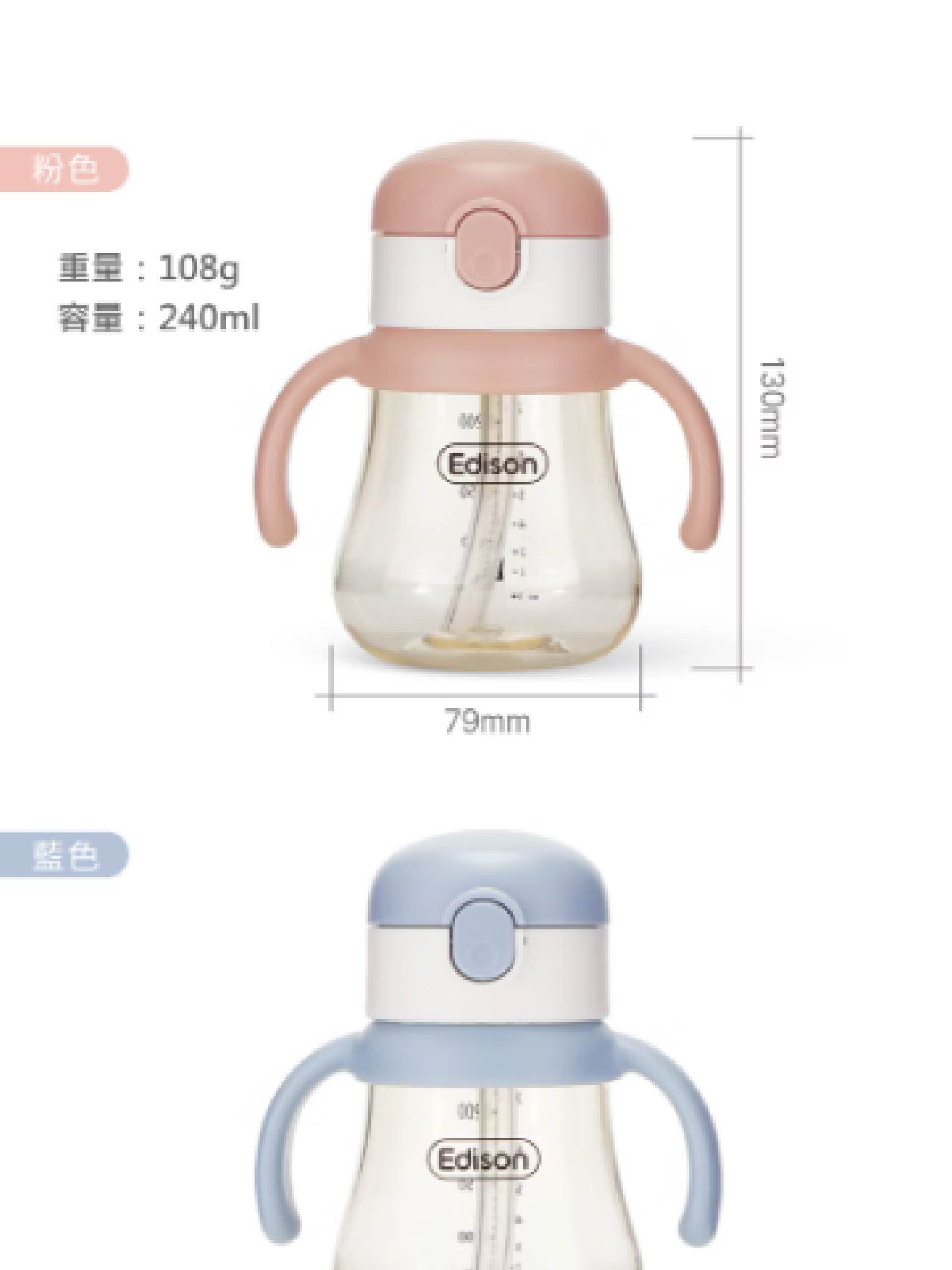 產品名稱:Edison 愛迪生幼兒雙握把防漏PPSU一鍵按壓彈蓋吸管水杯 240ml (贈重力球吸管)