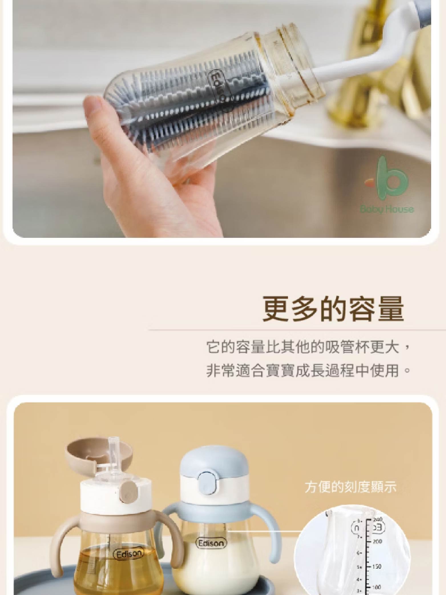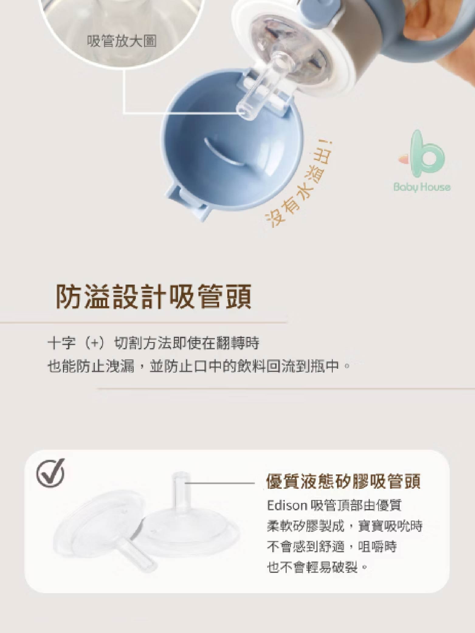 ●PPSU 安全無毒材料製成水杯,吸管採十字漏設計。