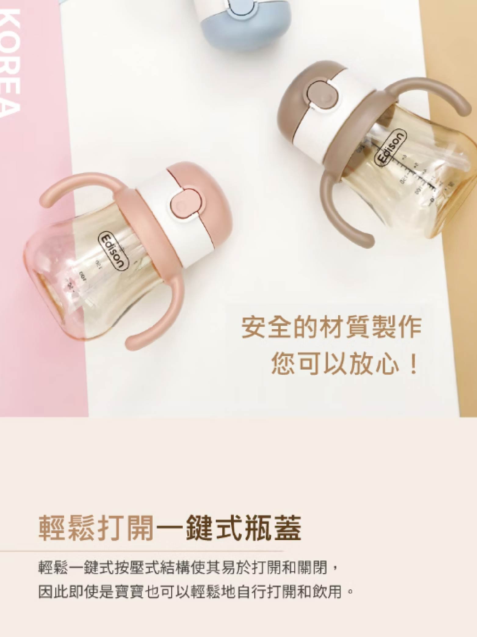 韓國 愛迪生Edison 幼兒雙握把防漏PPSU一鍵按壓彈蓋吸管水杯240ml(多色可選)