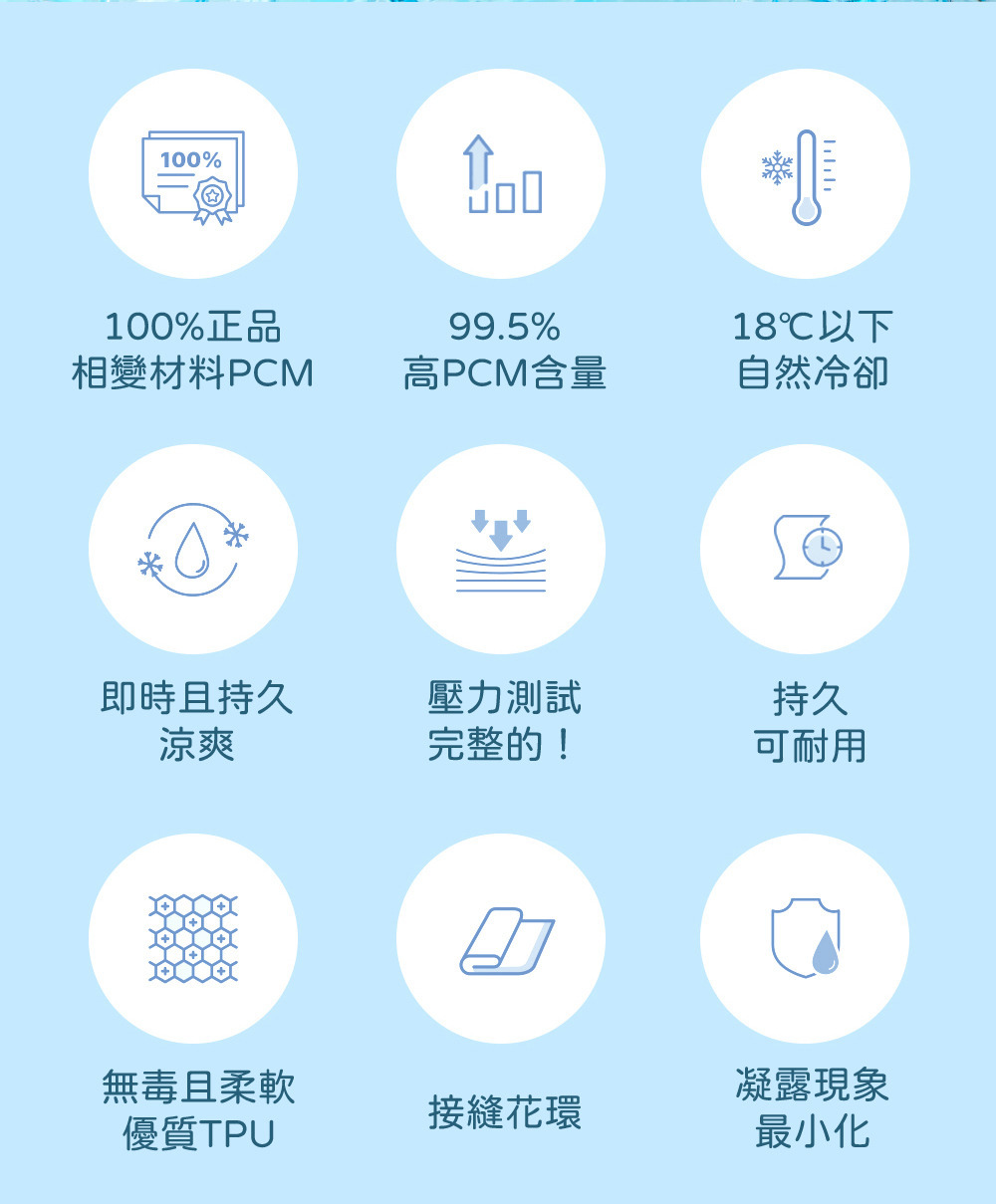 材質:表面TPU、填充物:相變材料PCM