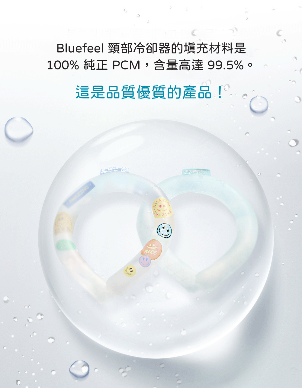 是美國 NASA 用在太空衣中,幫助太空人保持「恰到好處」的溫度的重要技術之一。BLUEFEEL在涼感頸圈中採用相同原料,幫助穿戴者能夠在炎熱的環境下,保持涼爽舒適。
