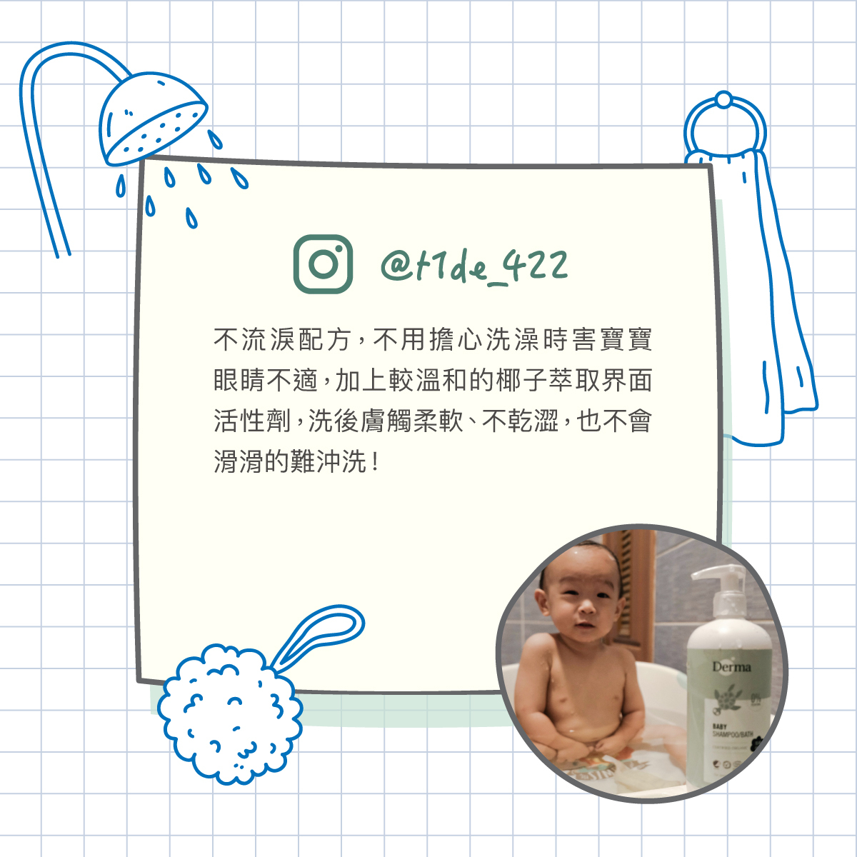用法:加數滴於浴盆水中用以洗淨寶寶身體,濕潤頭髮後取適量於掌心搓出泡泡清洗頭部,再以清水洗淨。