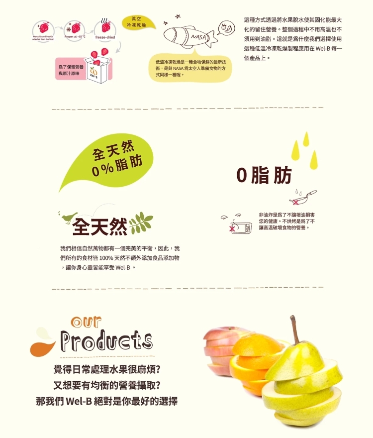 我們採用與NASA為太空人準備食物的方式同樣一種之低溫冷凍乾燥技術。