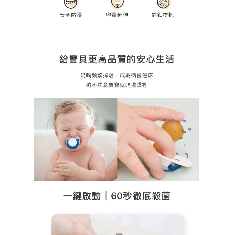 ✓擴充大容量 :3顆奶嘴收納 、奶瓶 、兒童餐具