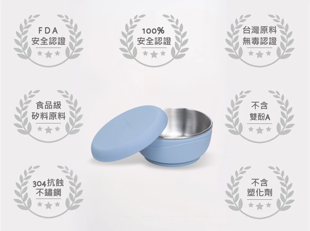 餐碗底部加上矽膠吸盤,下壓餐碗製造真空狀態的超強吸附力,保持餐碗穩定不傾倒。