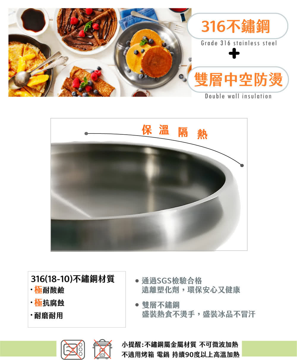 2.碗體採用中空雙層316醫療級不鏽鋼材質,抗腐蝕耐酸鹼 ,極佳耐熱性