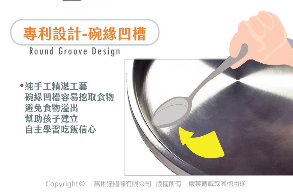 1.碗緣凹槽弧形專利設計,讓寶寶容易挖取食物,避免食物溢出