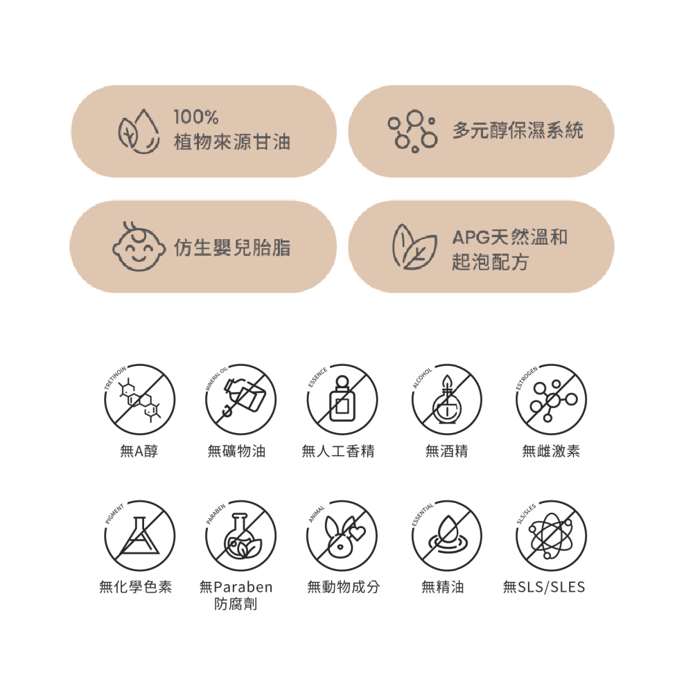 最適合初生肌使用的弱清潔配方。清潔同時滋潤肌膚、提升含水量,並強化皮膚自然屏障的防護力,形成黃金保護層;搭配溫和的植物來源起泡配方,細緻的泡泡能在清潔時帶走皮膚表面的髒污且不會過度傷害角質,洗後皮膚更加柔嫩、保水。