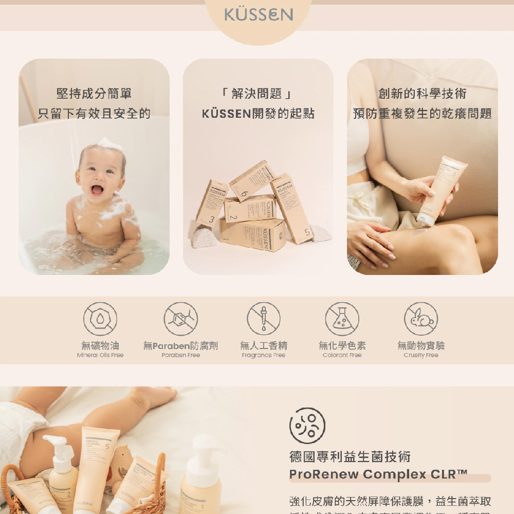 專為新生、嬰幼兒屁屁肌膚所開發之防護配方,具有隔離、舒緩、修護三重功效。9.9%高濃度氧化鋅添加,有助於形成不透水的保護屏障,隔絕皮膚與糞便、尿液的接觸,有效預防臀部周圍肌膚的不適;搭配德國專利益生菌技術及複方神經醯胺,能強化皮膚屏障,解決多種皮膚需求,讓寶寶的屁屁肌膚維持在最好的狀態。