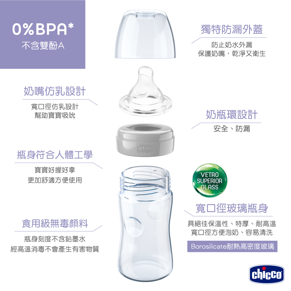 義大利 Chicco 舒適哺乳-防脹氣玻璃奶瓶 150ml(小單孔)