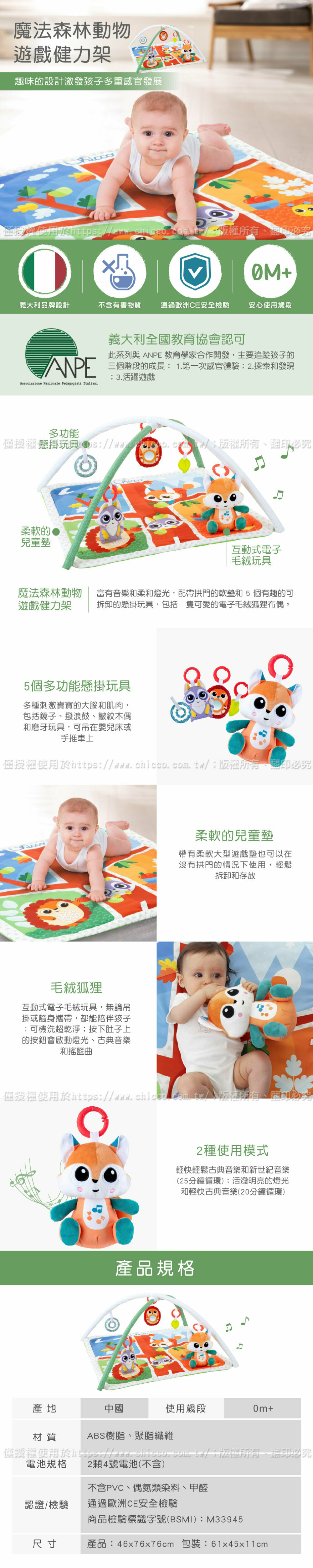 義大利 Chicco 魔法森林動物遊戲健力架