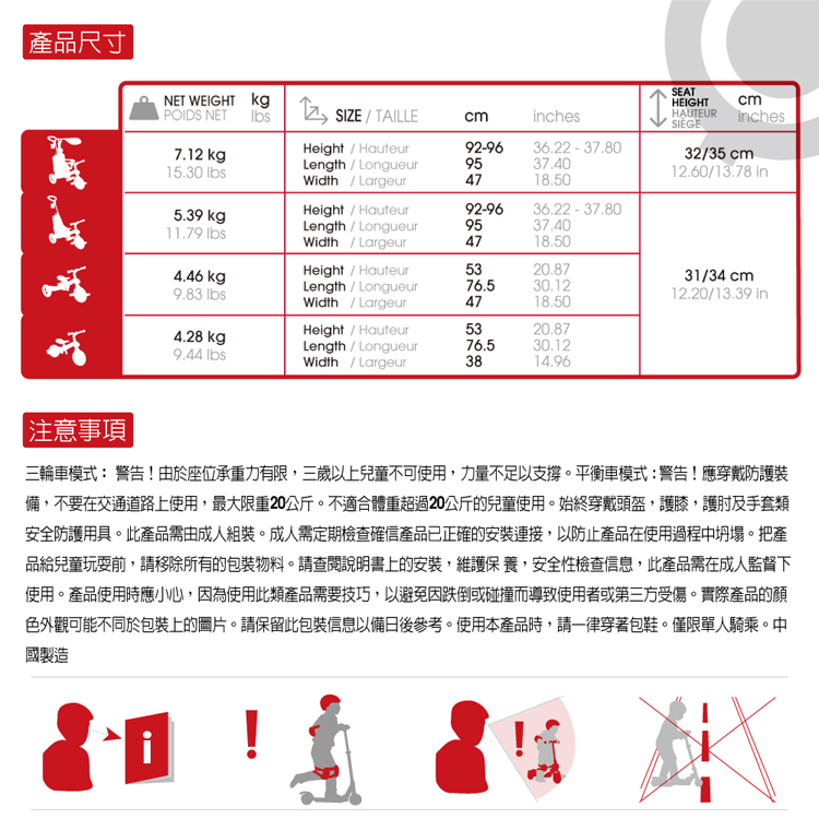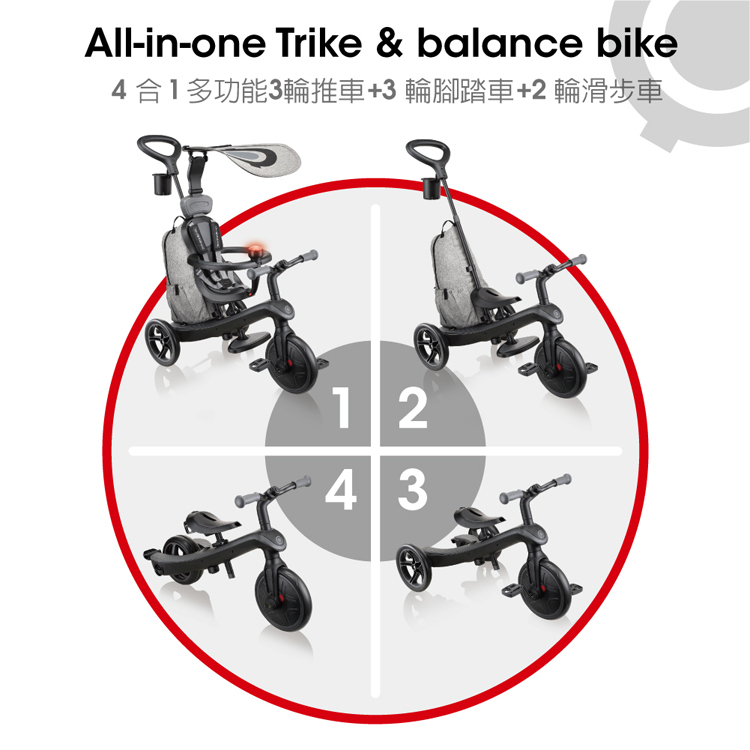 ●3輪推車變2輪滑步車,可鍛鍊寶寶平衡感及全身反應能力,讓寶寶在健康快樂成長