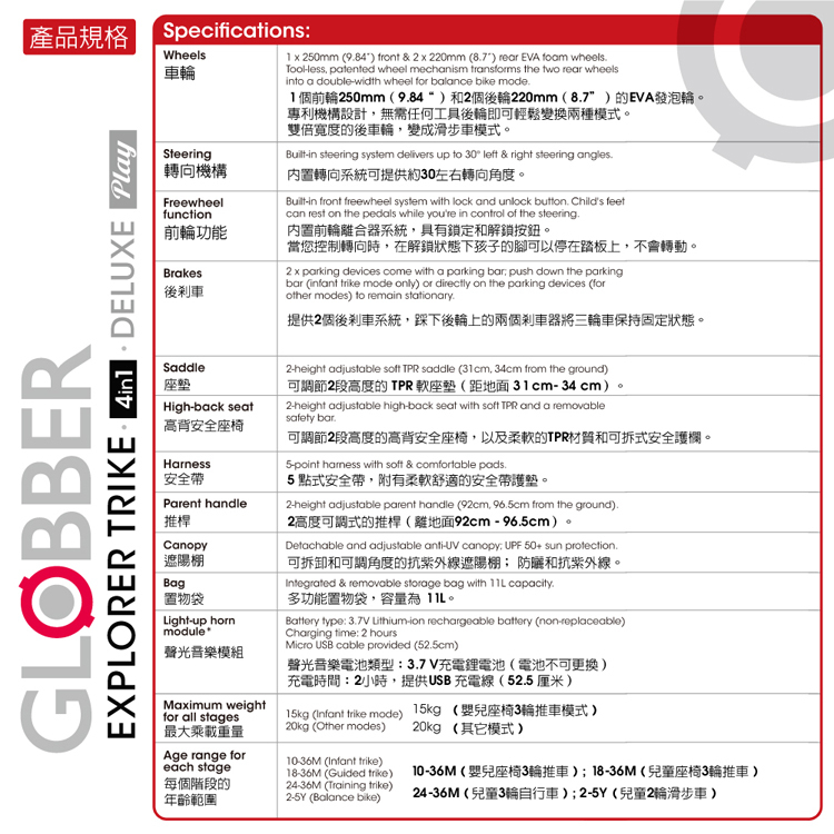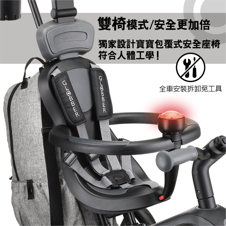 ●寶寶2歲以上時可拆下推桿及踏板,讓寶寶學習騎乘腳踏車