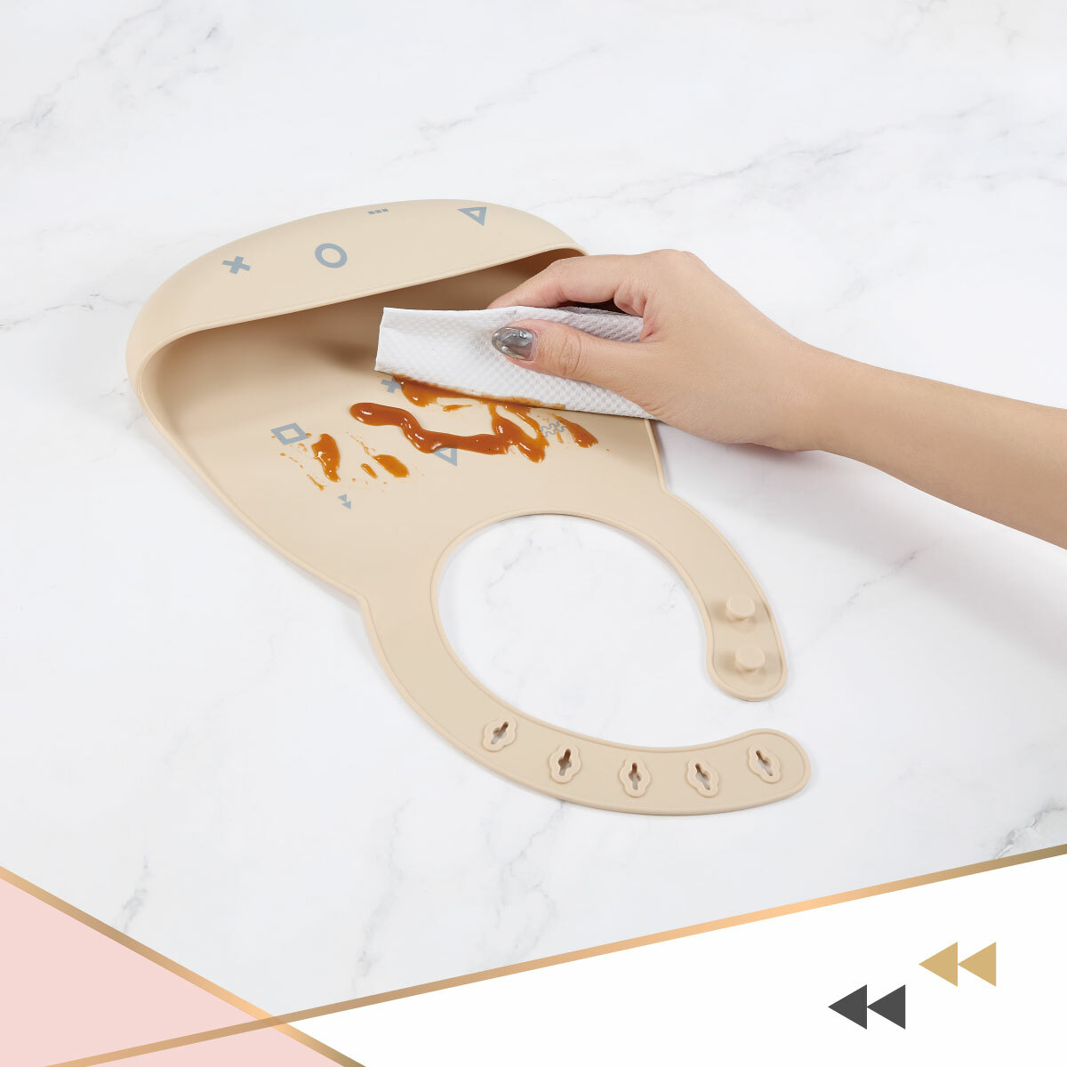 使用方法:將圍兜放於寶寶的脖子並扣上,確保舒適且不要太緊