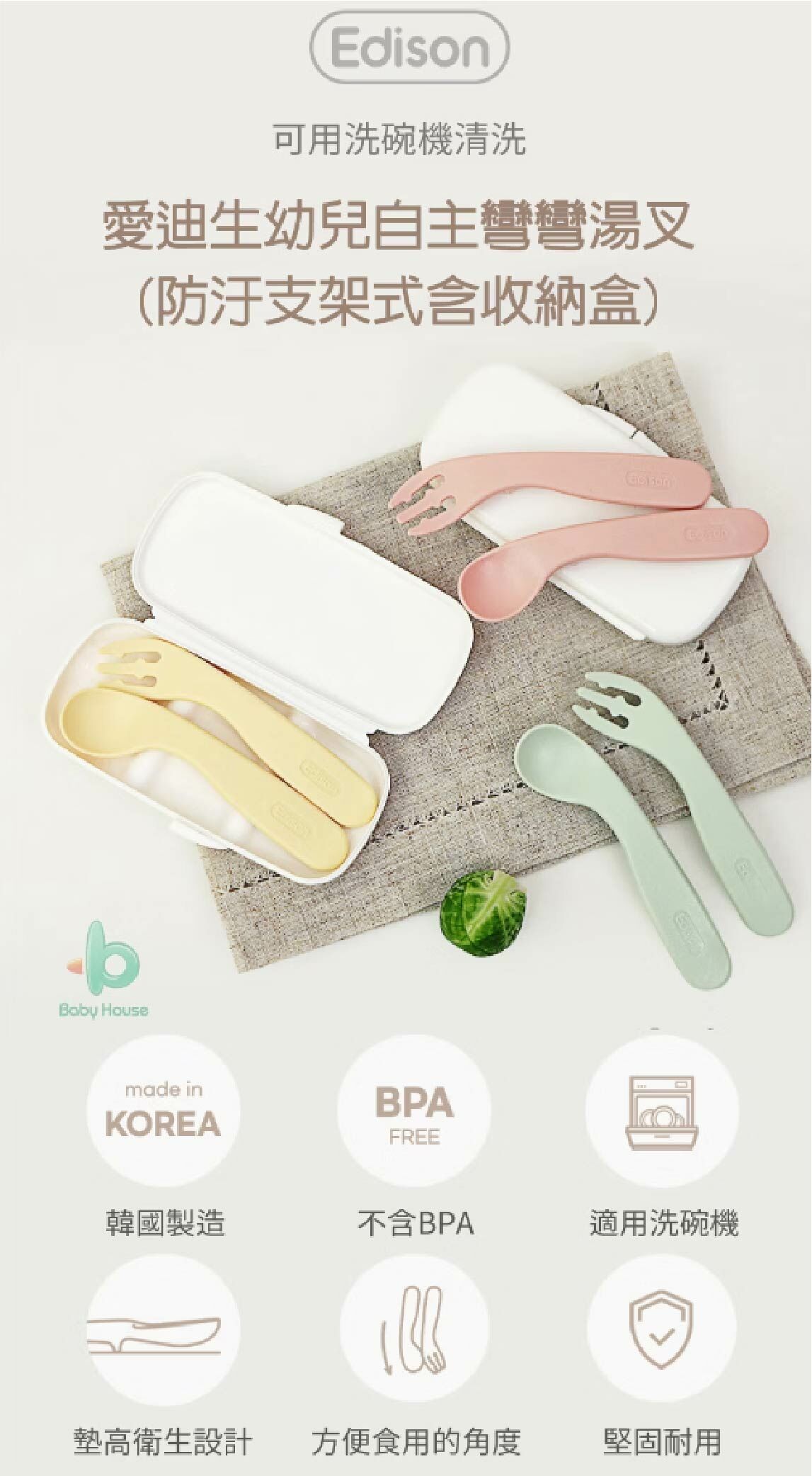 韓國 愛迪生Edison 幼兒自主彎彎湯叉 (防汙支架式含收納盒)