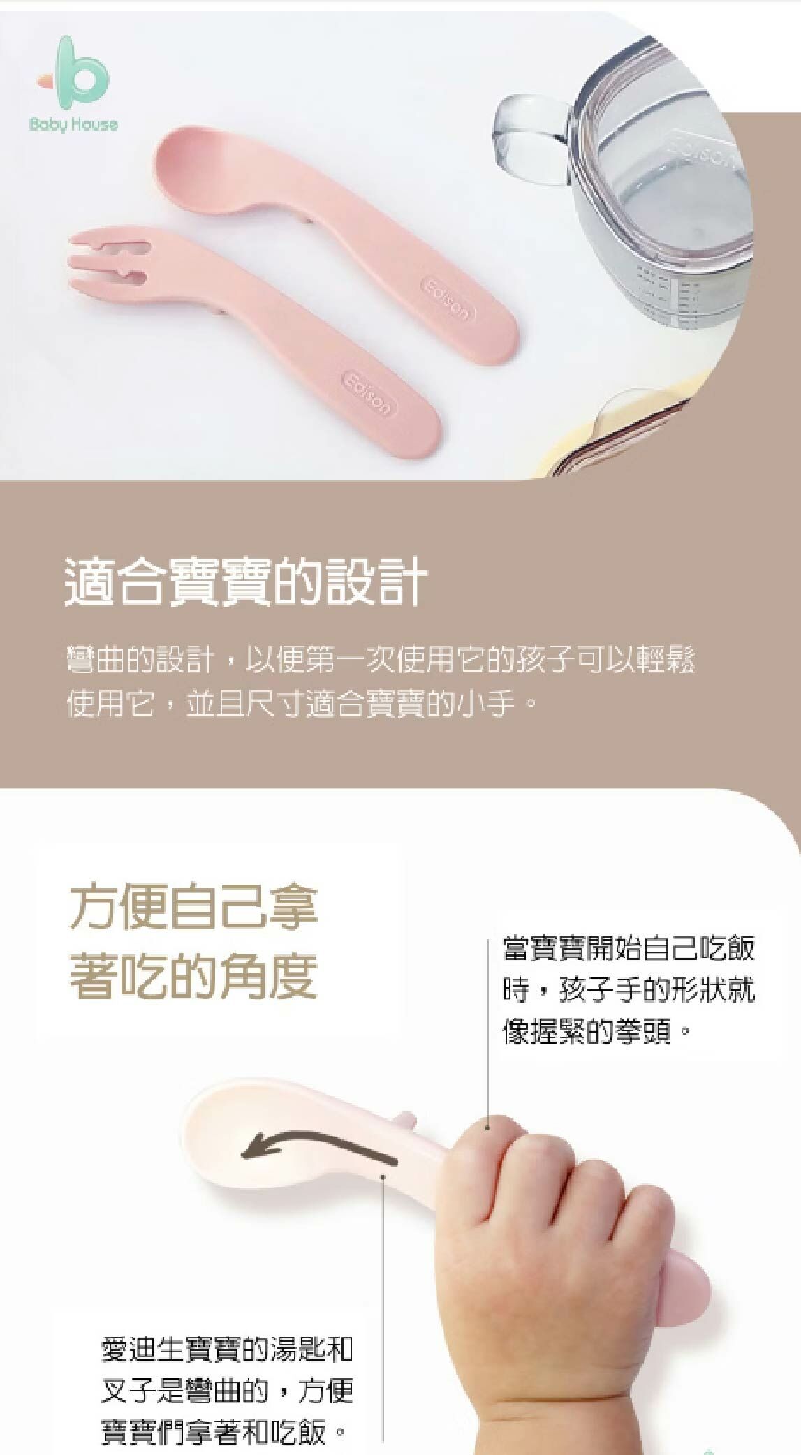 貼心衛生設計-愛迪生湯匙叉的設計使得放入口中的部分即使掉落也不會接觸地板,因此可以衛生地使用。