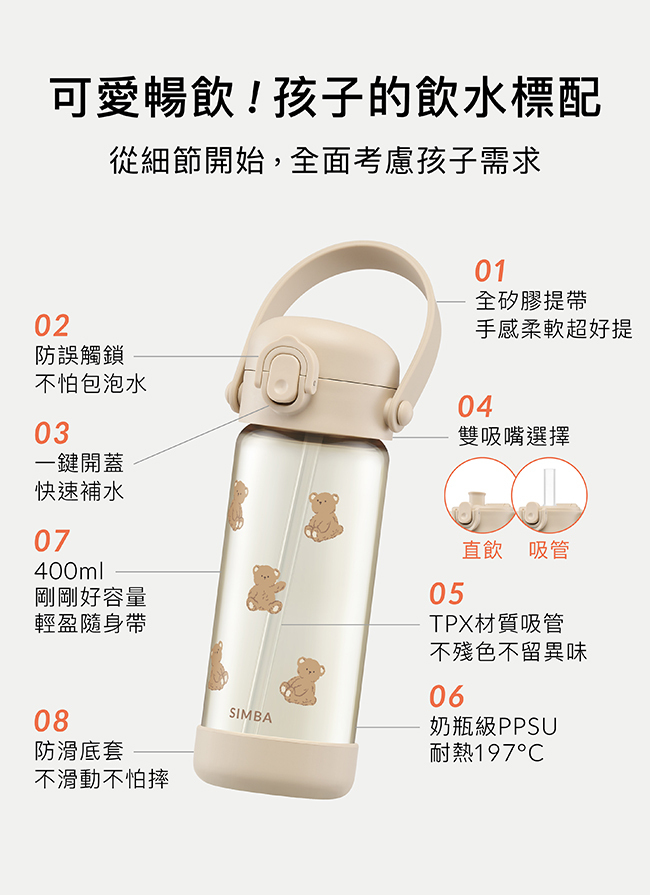 吸管型/直飲型兩種選擇,學飲成長更到位。