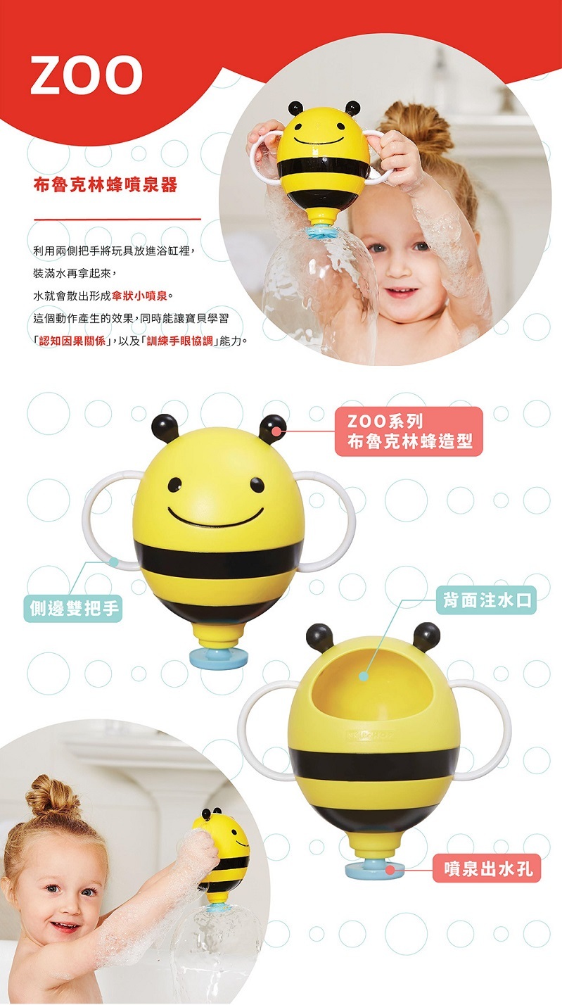 寶寶可輕鬆抓握兩側把手,裝滿水後拿起會形成傘狀的小噴泉,讓寶寶自然而然愛上洗澡,享受每一次的沐浴時光。