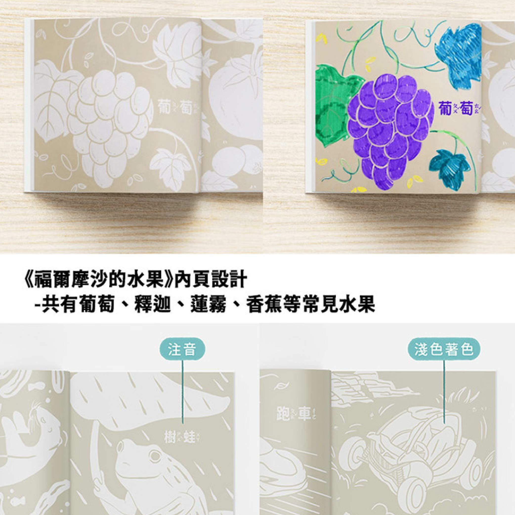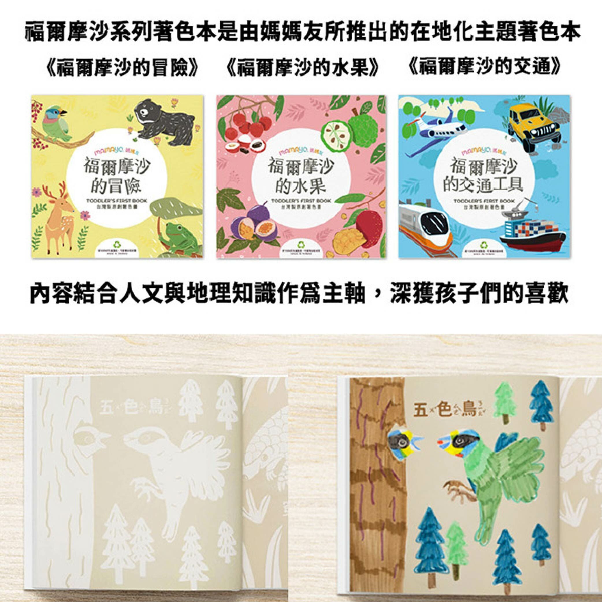 結合在地人文、動物與地理知識..等作為主軸,是在地化主題著色本,共有三冊,分別為福爾摩沙的冒險、福爾摩沙的水果、福爾摩沙的交通