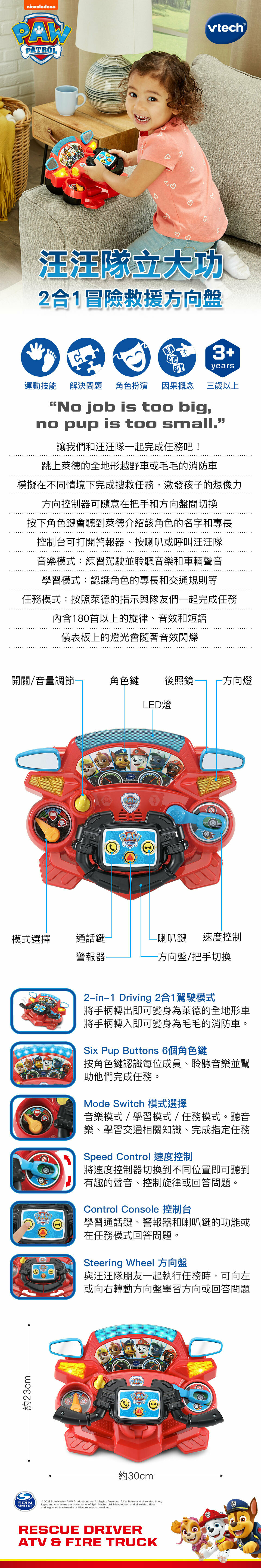 控制台可打開警報器、按喇叭或呼叫汪汪隊