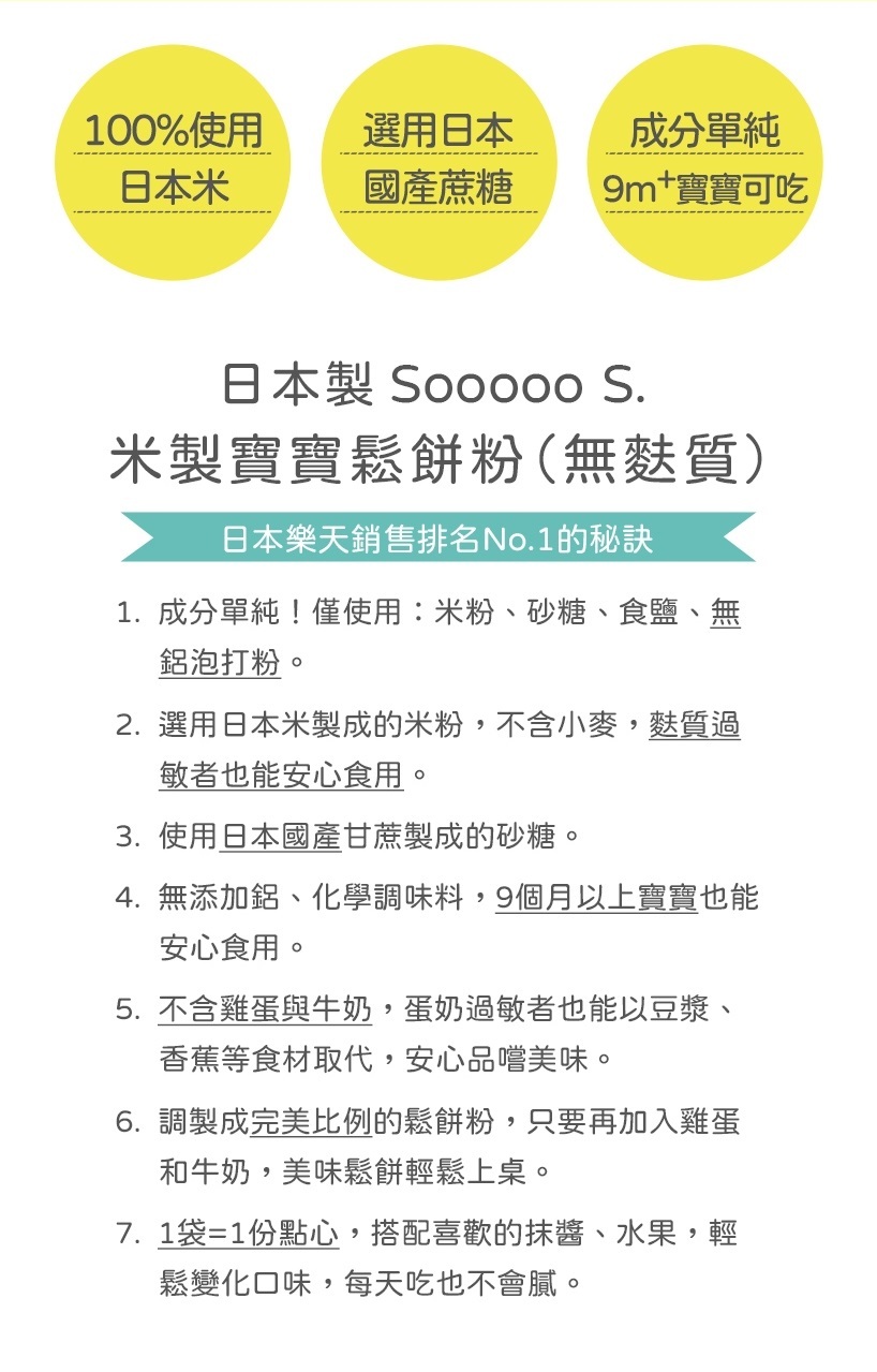 ◆日本國產原料,米粉+砂糖+食鹽+無鋁泡打粉