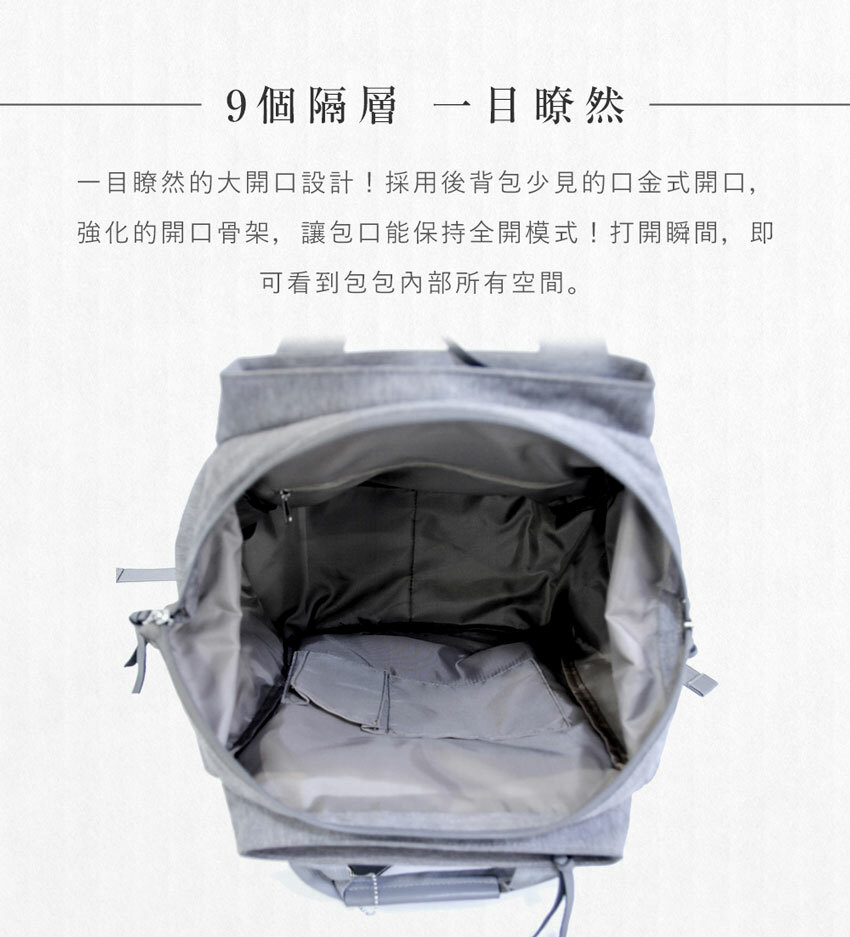 圓弧形大開口,多口袋收納功能,隱密防盜夾層