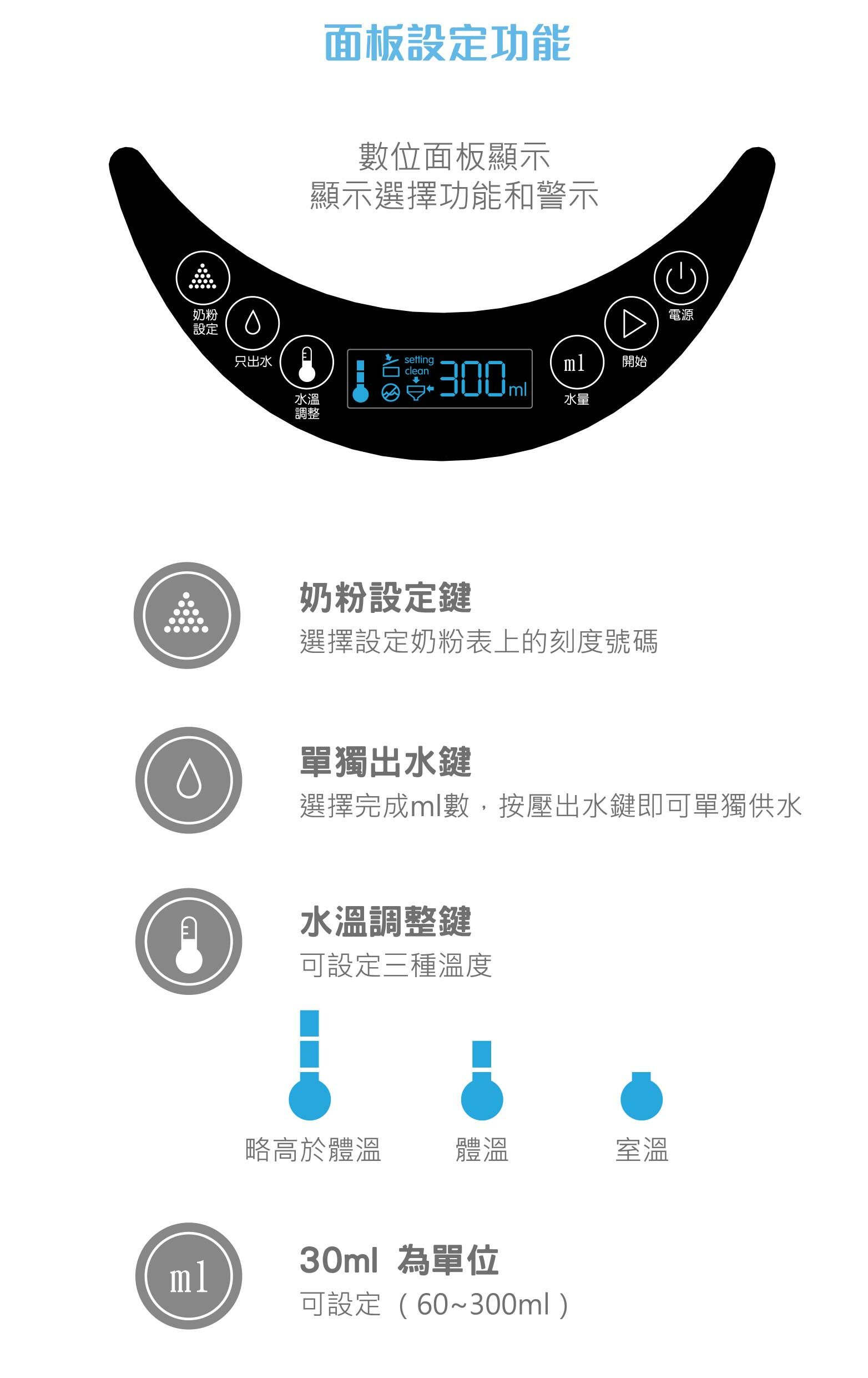 ▪️三段水溫設定、使用簡單,隨時一個按鍵即可完成沖泡奶粉
