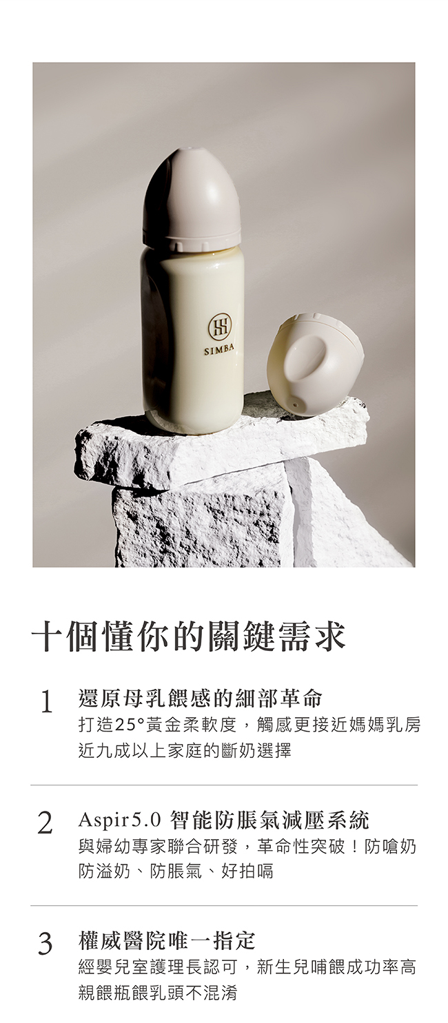繼前幾代奶瓶在媽媽圈大受好評!小獅王辛巴擁有近30年日積月累的製瓶經驗,直擊新生家庭的需求,再次打造顛峰水準的奶瓶之作。蘊蜜鉑金PPSU防脹氣奶瓶與世界媽媽共鳴,更懂你的需求。