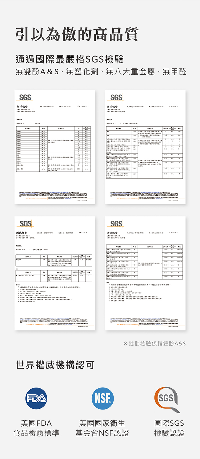 7.業界唯一每批奶瓶瓶身經國際權威SGS嚴格檢驗,不含雙酚A&S、塑化劑。