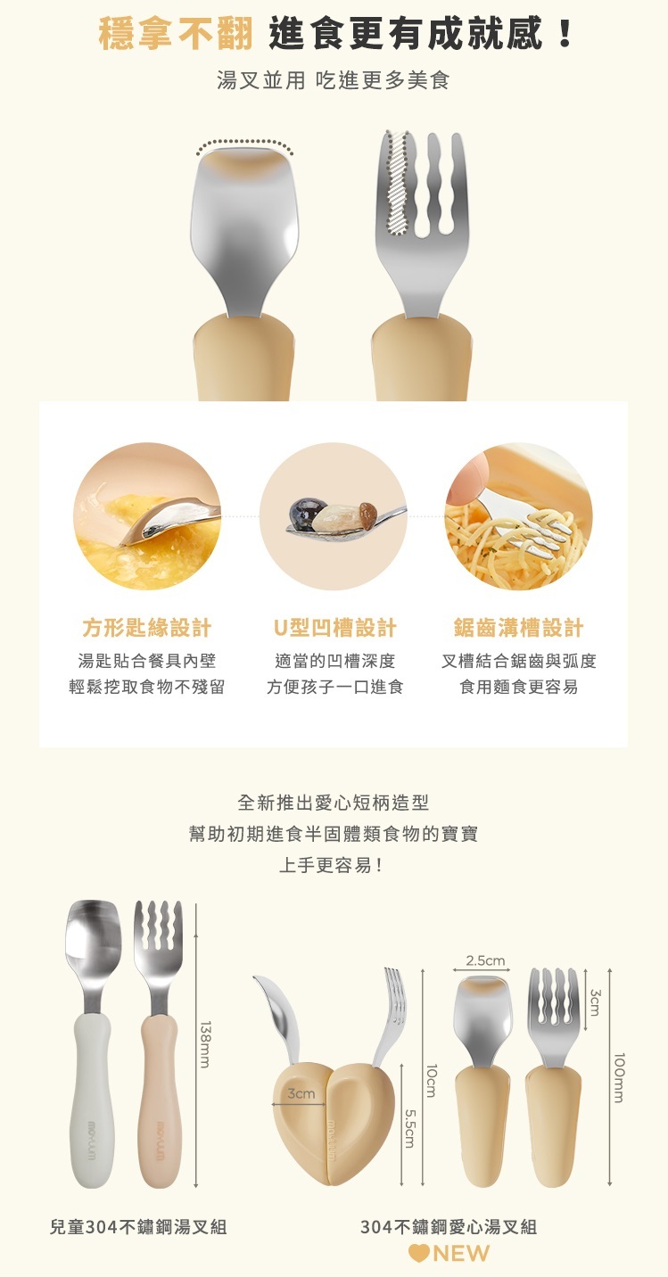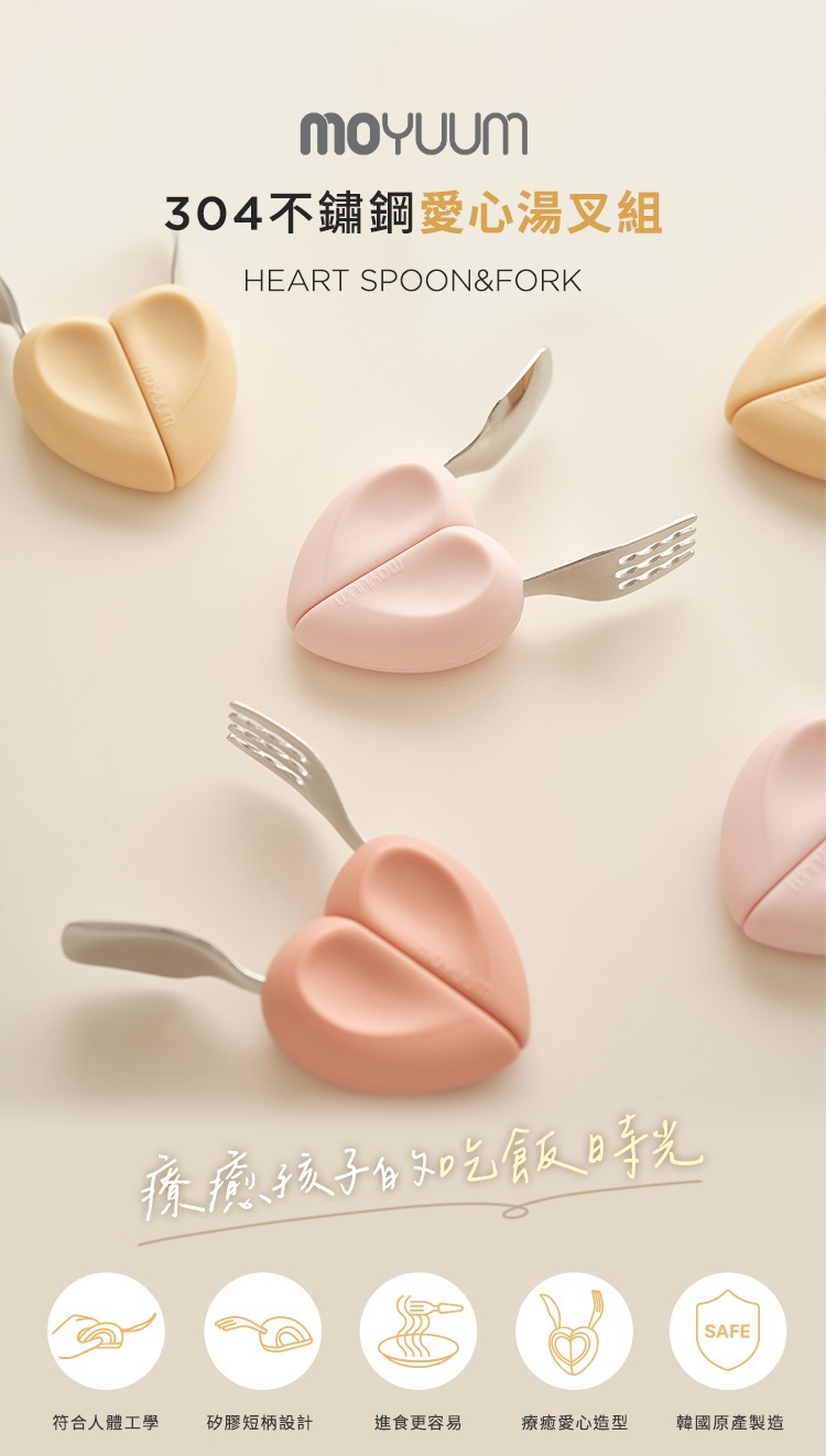 韓國 MOYUUM 304不鏽鋼愛心湯叉組(3色可選)