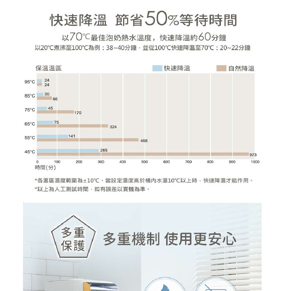 7段式保溫溫度選擇 : 40°C,50°C,60°C,70°C,85°C,98°C, 常溫
