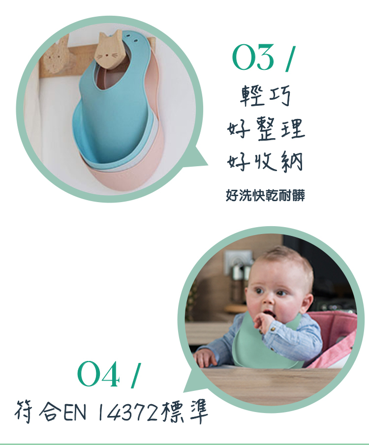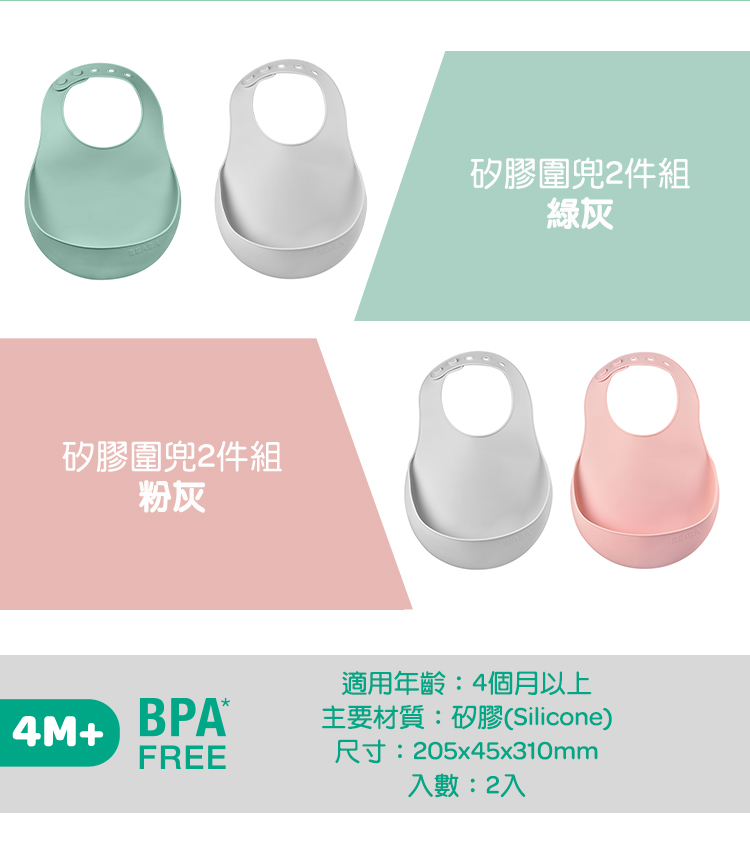 法國 BEABA 矽膠圍兜2件組(2色可選)