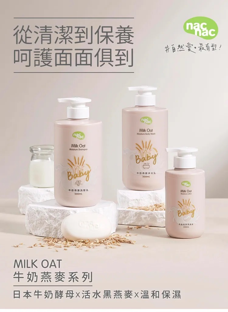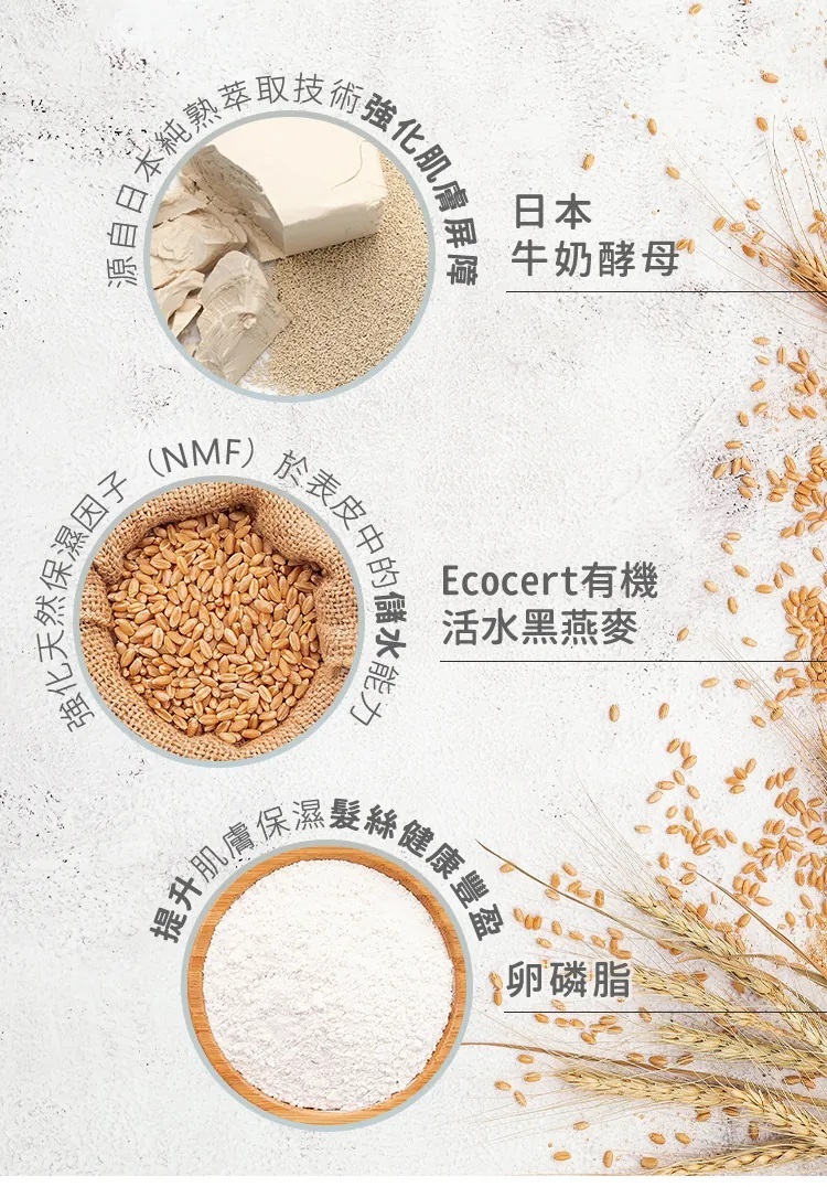 添加燕麥精華,舒緩乾燥不適;牛奶蛋白,維持柔嫩細緻,