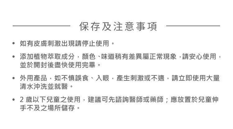 排除爭議性原料Paraben、MI/MCI類防腐劑。