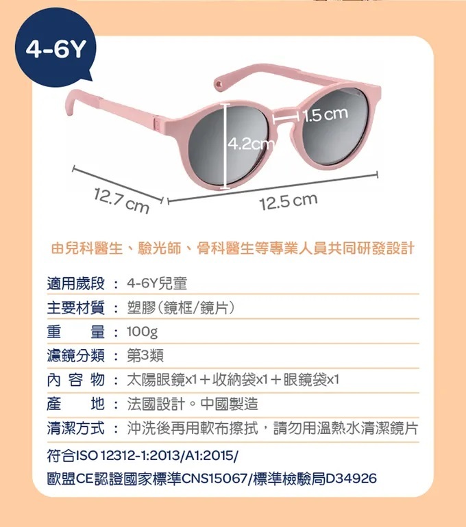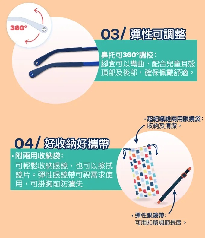 鼻托柔軟,無鏡腳設計,適合初生嬰兒平躺配戴。頭套帶有彈性可調節長度