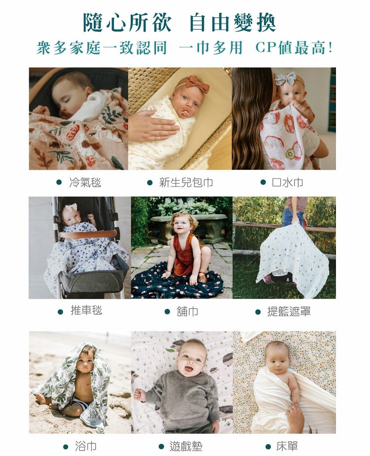 一巾多用途,可當包巾、蓋被、哺乳遮巾、床單