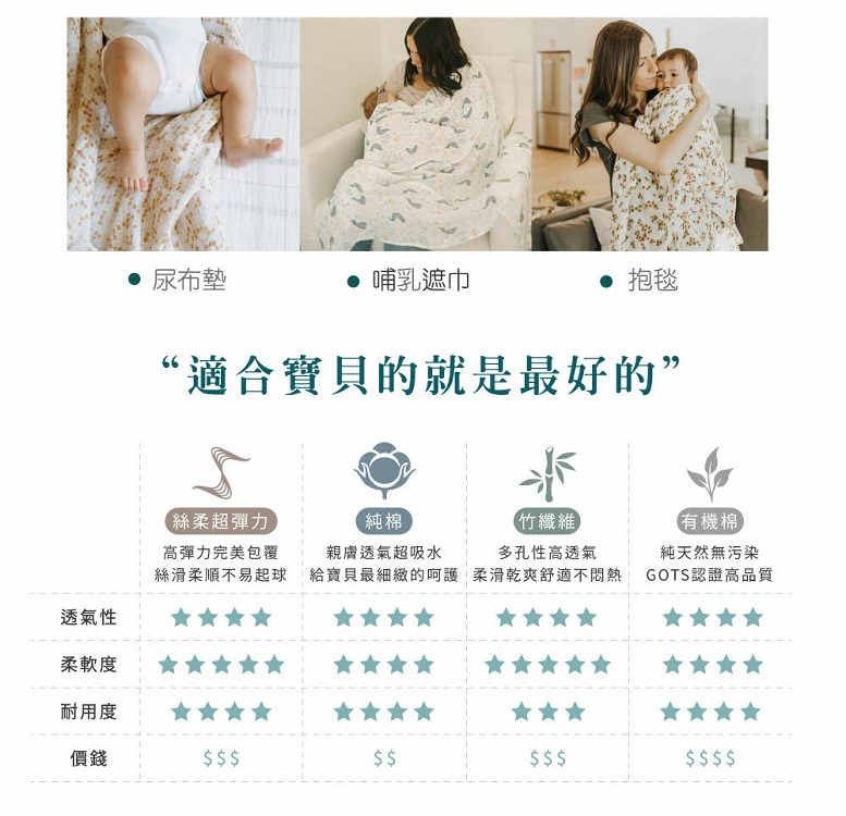 一巾多用途,可當包巾、蓋被、哺乳遮巾、床單