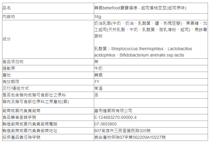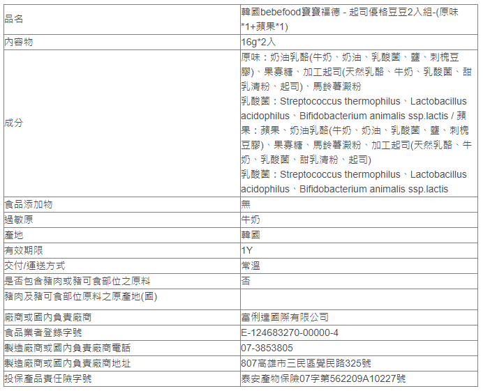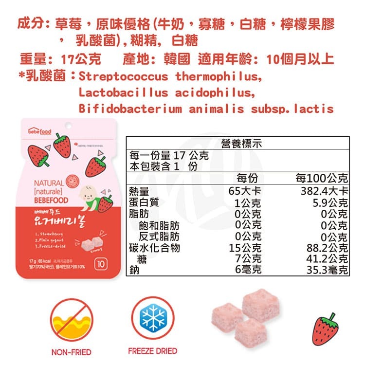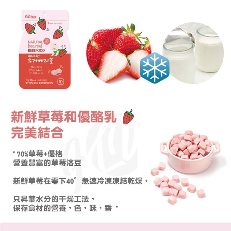 1.商品組合/規格:韓國 BEBEFOOD寶寶福德 草莓優格豆逗餅 6入組