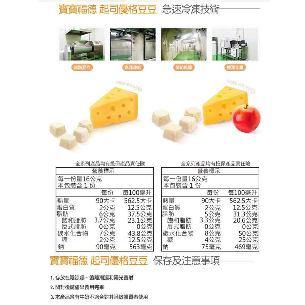 成分:蘋果、奶油乳酪(牛奶、奶油、乳酸菌、鹽、刺槐豆膠)、果寡糖、馬鈴薯澱粉、加工起司(天然乳酪、牛奶、乳酸菌、甜乳清粉、起司) 乳酸菌:Streptococcus thermophilus、Lactobacillus acidophilus、Bifidobacterium animalis ssp.lactis