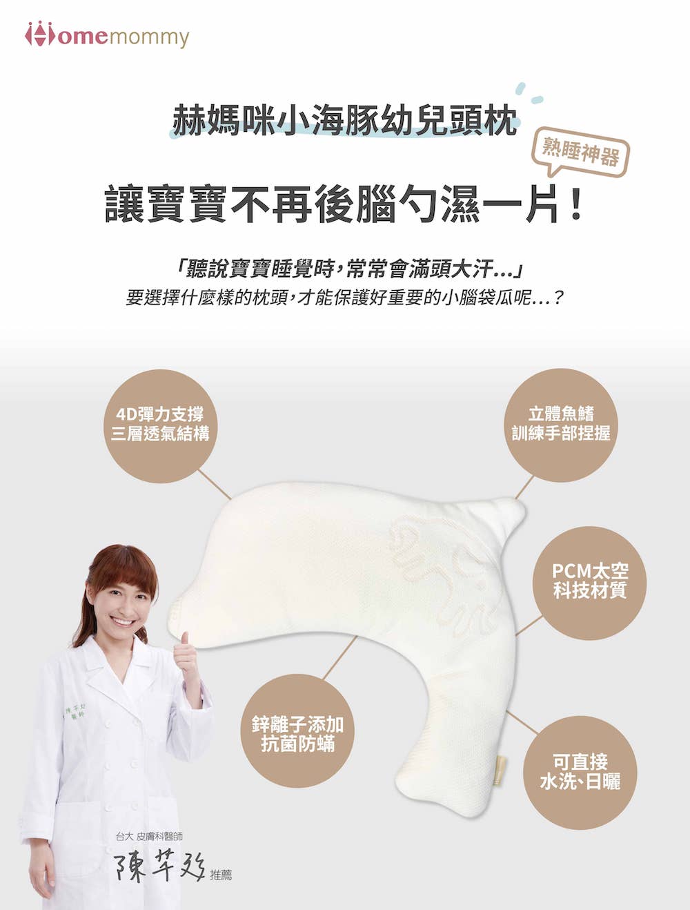 台灣 赫媽咪智能調溫可水洗-小年糕嬰兒方枕/小海豚幼兒頭枕/大海豚萬用枕