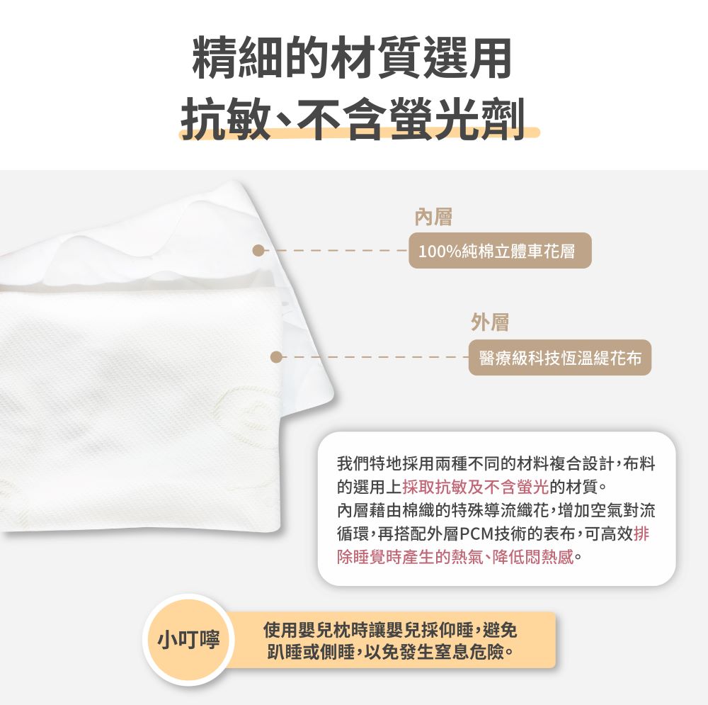 智能調溫材質 : 採用醫療級智慧恆溫技術;層層透氣,四季可用,乾爽舒適