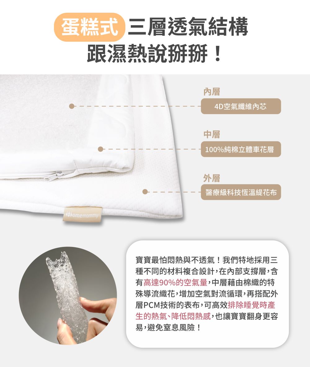 外布套採用獨特醫療級智慧調溫 PCM 技術 : 接觸寶寶肌膚時,可以解決睡眠時因悶熱、流汗而產生濕疹發癢過敏的發生,有效調節溫度並保持涼爽,一夜好眠的機能寢具!