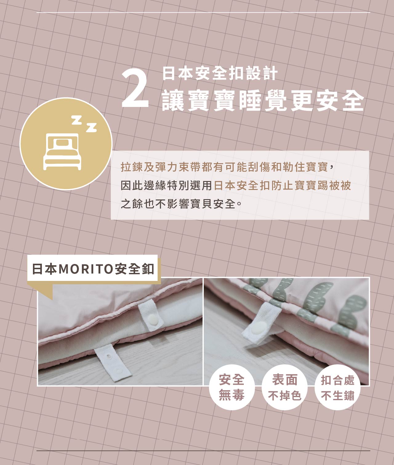 5. 無拉鍊設計、防踢被功能,簡單扣上、安心入睡
