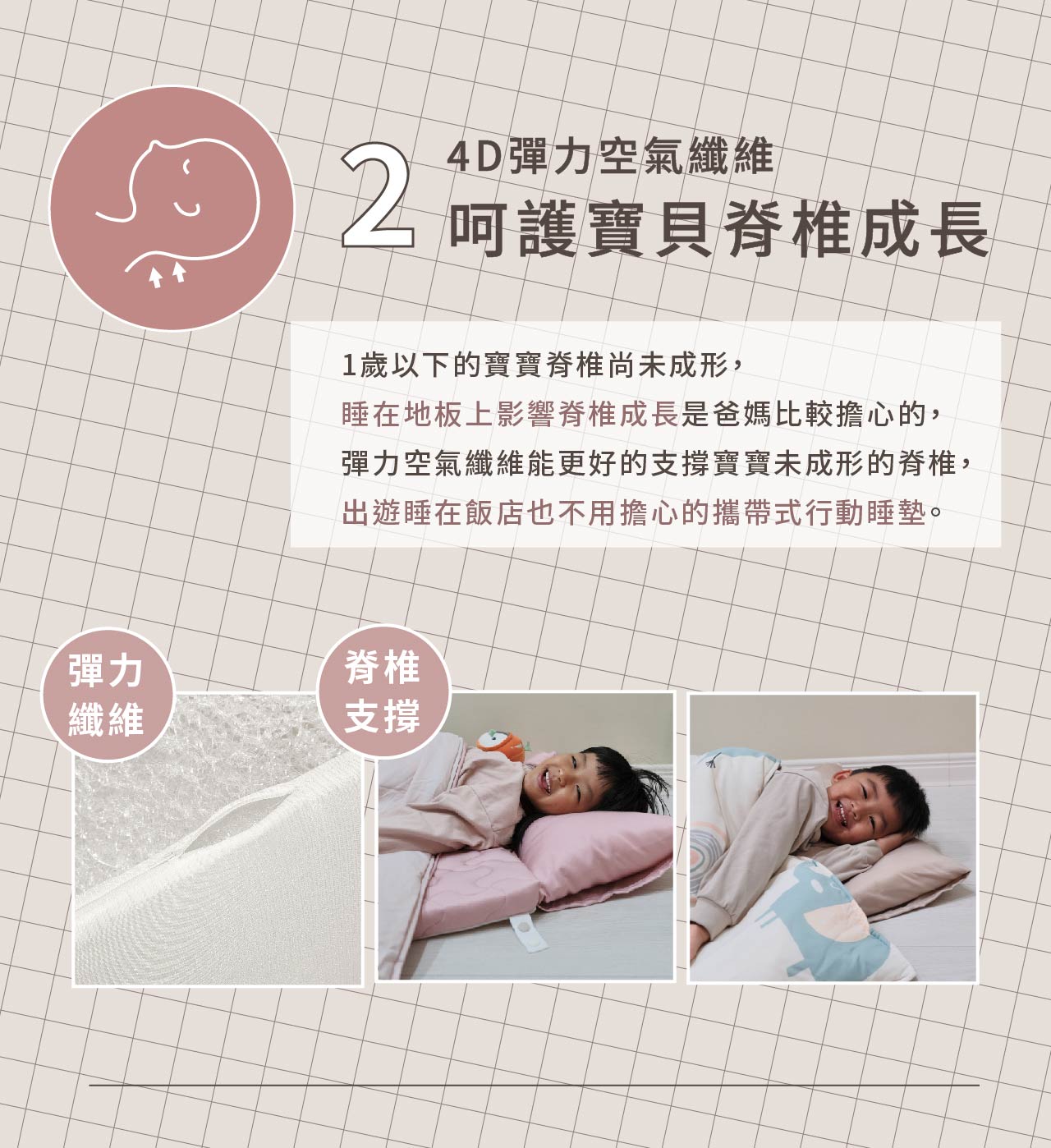 4.打造兩種形式睡墊,依孩童生長發育需求不同階段自由選擇