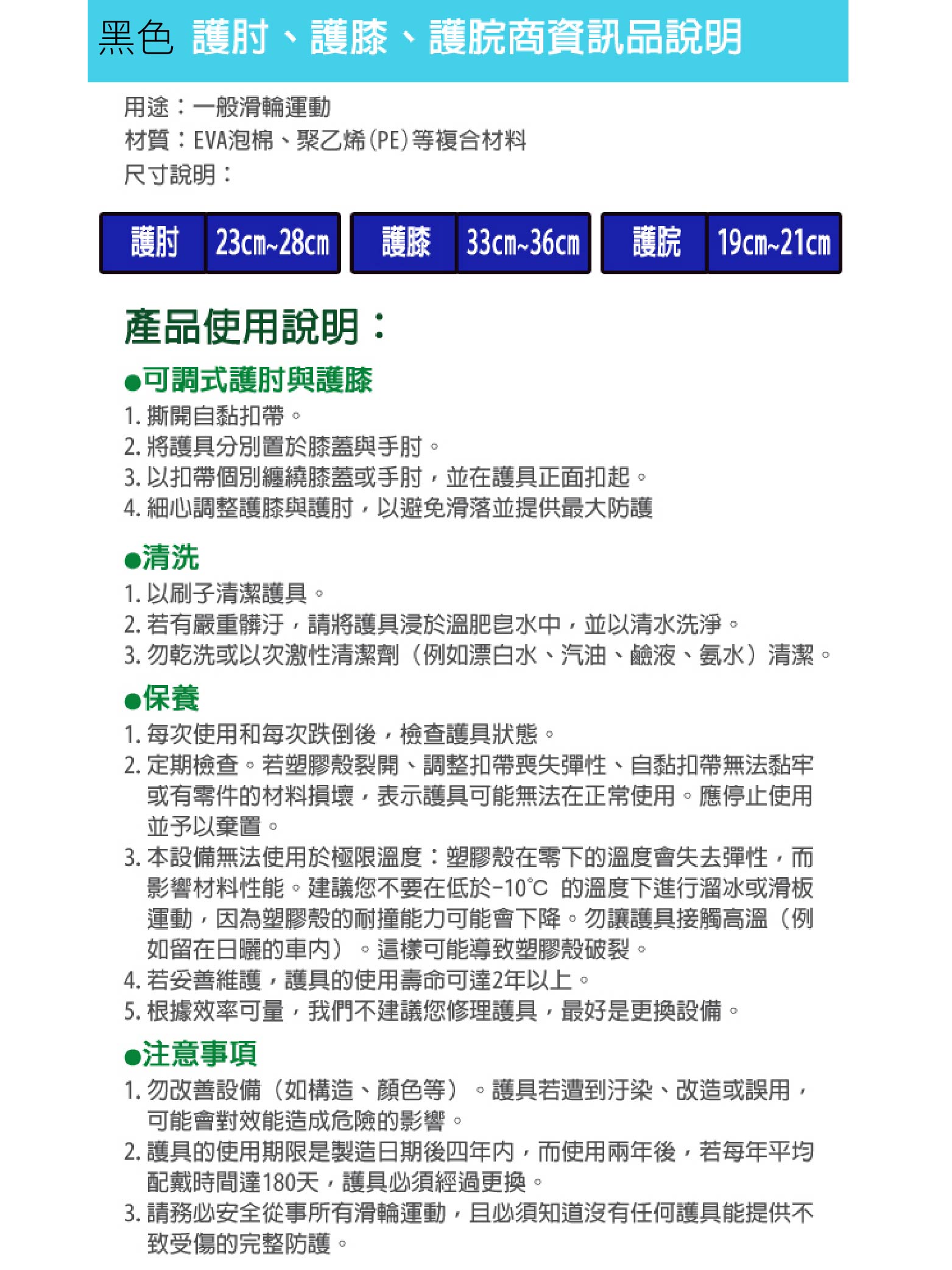 商品內容:護肘*1組、護膝*1組、護脘*1組