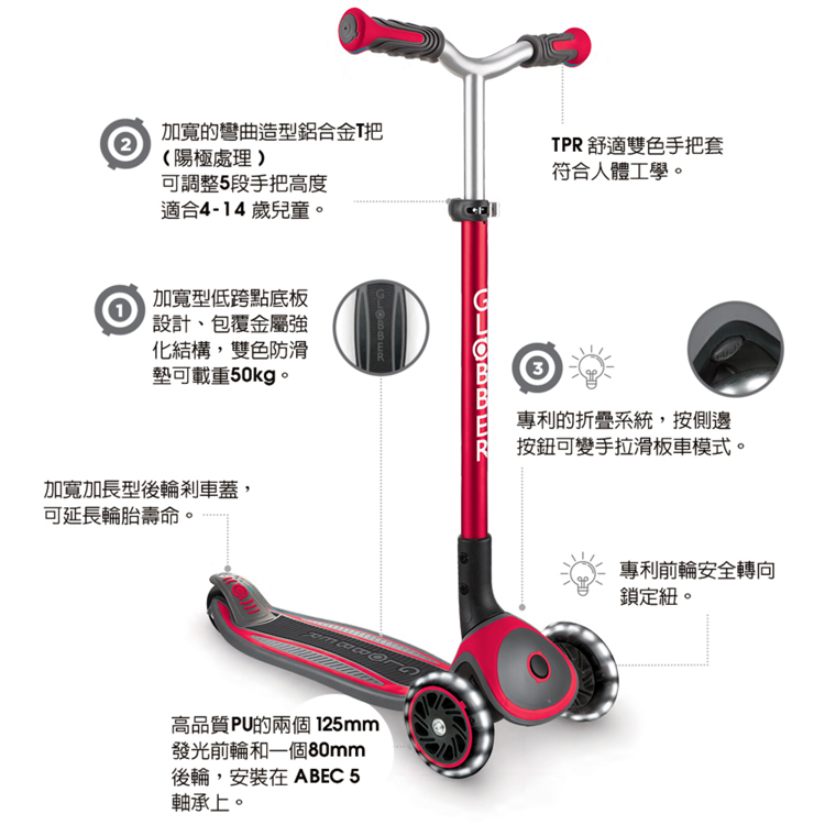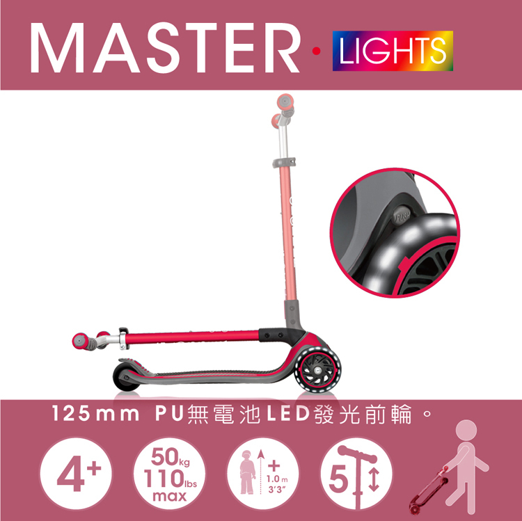 法國 GLOBBER 2合1三輪折疊滑板車大師版(酷炫白光發光輪)(多色可選)